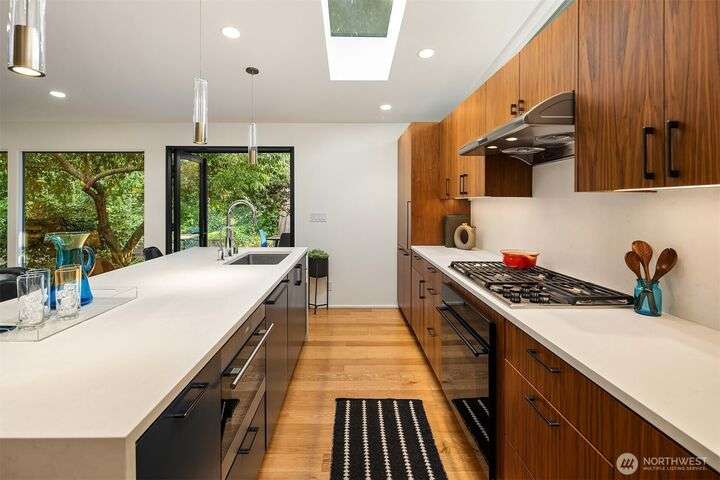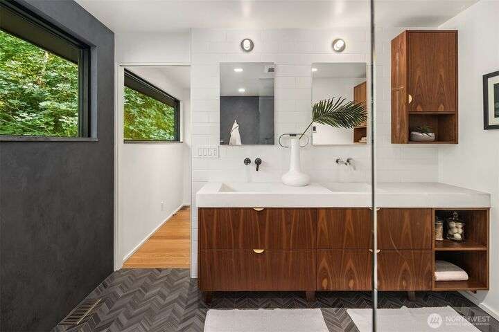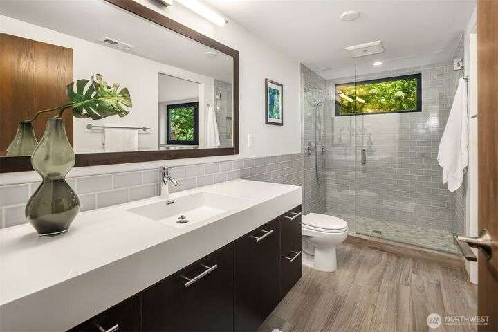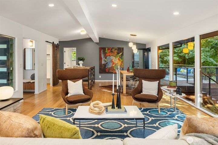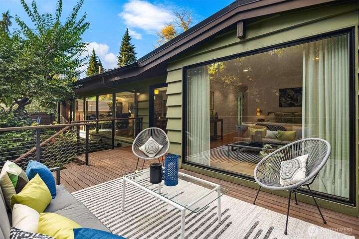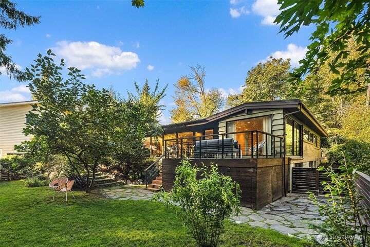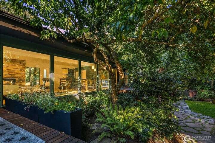 Nestled along a lush greenbelt between Magnolia Blvd and Perkins Lane, this Palm Springs–inspired midcentury modern has been reimagined with a studs out remodel in 2019. Inside, every detail is thoughtfully designed—from custom cabinetry with hidden coffee station and integrated charging ports to a dramatic wall of floor-to-ceiling windows that seamlessly connect interior living spaces to lush outdoor gardens with year-round blooming interest. Outside, bird enthusiasts will enjoy visits from the eagles, owls and Cooper hawks before retreating into the spa-like primary suite and sounds of the babbling brook just outside. BLISS! Just down the street, enjoy Elliott Bay beach walks and waterfront exploration. Come visit this magical setting.