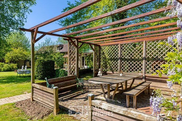 A pleasant pergola placed in the garden, a vegetable garden, a garden shed, 2 large sheds and a kennel for a large dog, 3 parking spaces and an attic complete this beautiful exceptional property.