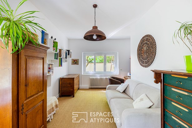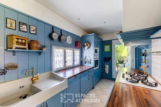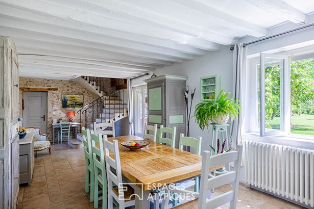 Set on a beautiful flat plot of 1844 sqm, on a dead-end road, it will appeal to families looking for space, light and well-being. Away from prying eyes, this family home is spread over two levels, having retained the character of the old with its original beams while combining the comfort of modernity.