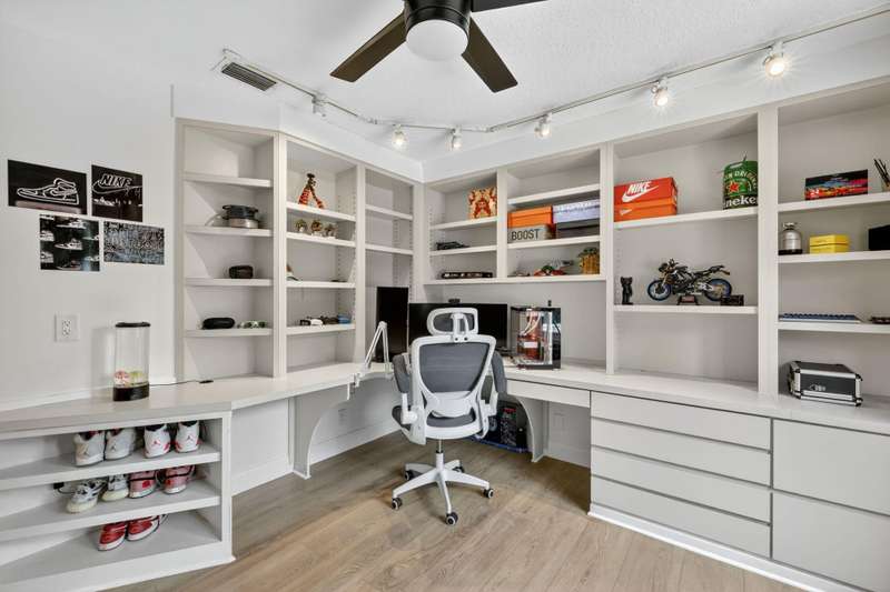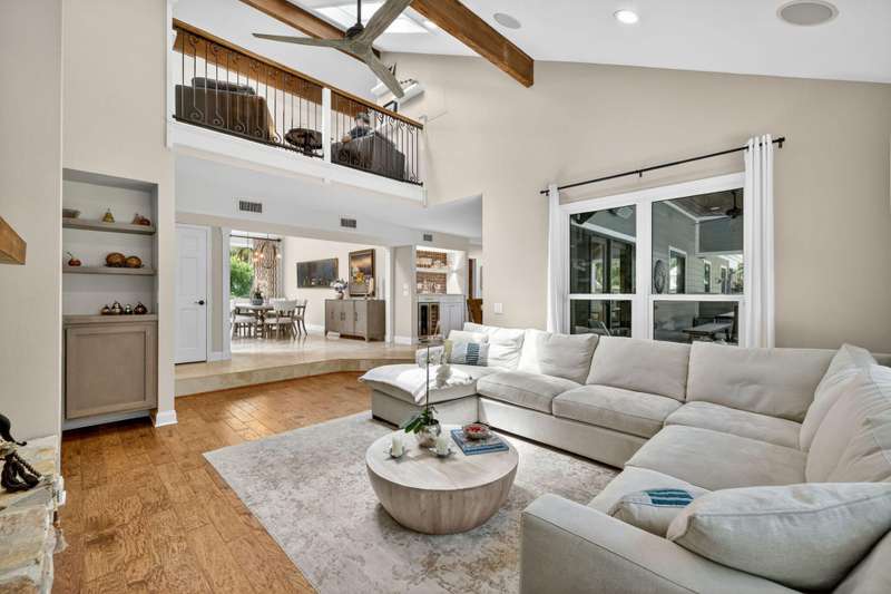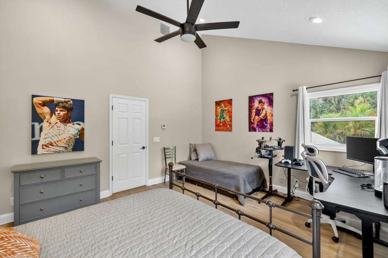 Live, work & play in your own tropical oasis! Nestled on over 1.5 lush acres in the heart of Palm City, this beautifully updated home features 5bed/3.5bath/3car, den & office spacious media room with closet and 2 gym studios. Enjoy over 5400+ sq ft of living space with room for everybody! Upgrades include impact windows and doors throughout, updated open kitchen with large island, quartz countertops and high-end appliances with master suite on main level with own sitting area. Step outside to your private paradise complete with tiki bar, grill & TV, cabana bath & saltwater pool with fire pit, perfect for year-round entertaining and relaxing in the Florida sunshine. Great location close to A-Rated schools, golf, tennis, I-95, Turnpike, fine and casual dining, beaches and PBI Airport.