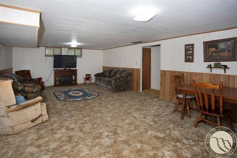 Enjoy country living just outside Laurel on nearly 5 acres with irrigation in Carbon County. This ranch-style home offers a main level with 3 bedrooms, 1 bathroom, stackable laundry, an updated kitchen, and a cozy living room with a wood-burning fireplace. The basement adds a second kitchen, laundry, bathroom, living area, and 2 bedrooms—ideal for multi-generational living or rental income with potential for a private entrance. An attached carport provides covered parking, and the HVAC system and hot water heater were recently updated. Outside, enjoy a barn with animal stalls, equipment storage, and hobby space, along with pasture, loafing shed, corral, garden, fruit trees, and mature landscaping for privacy. Horses, cattle, and chickens are welcome. Serviced by a well and Danford Ditch rights that are tied to the land, this property blends comfort, function, and authentic country charm.
