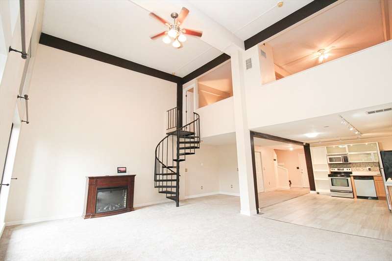 Industrial loft-style living at Riverbend! This top level condo offers dramatic high ceilings, oversized windows and sliders that flood the space with natural light, and an elegant spiral staircase that sets a tone. The renovated kitchen features new cabinets, fresh LVT flooring, stainless steel appliances, and a mosaic tile backsplash, perfectly complementing the open-concept design. Two generously sized bedrooms provide flexibility for guests or a home office, while the private balcony off the living room invites you to relax outdoors. Enjoy the comfort of central air conditioning, the community s inground pool, landscaped grounds, and scenic location along the Taunton River. Commuters will appreciate quick access to Rt 24, 44, 495, and being just a 10-minute ride to the South Coast Commuter Rail. A rare chance to own a stylish, updated home in a scenic, ultra-convenient setting! - And in a prime location within the building.