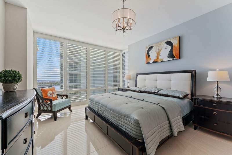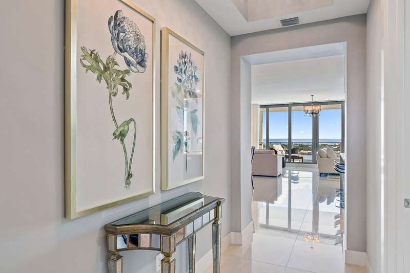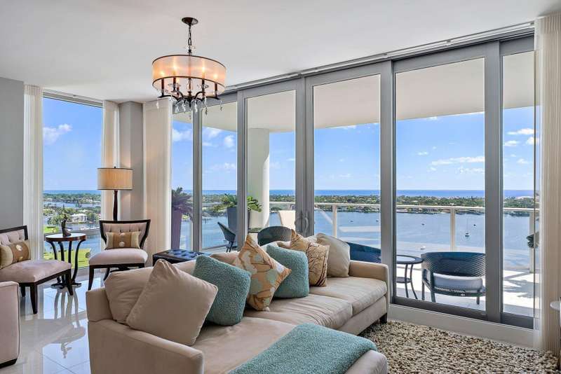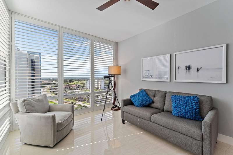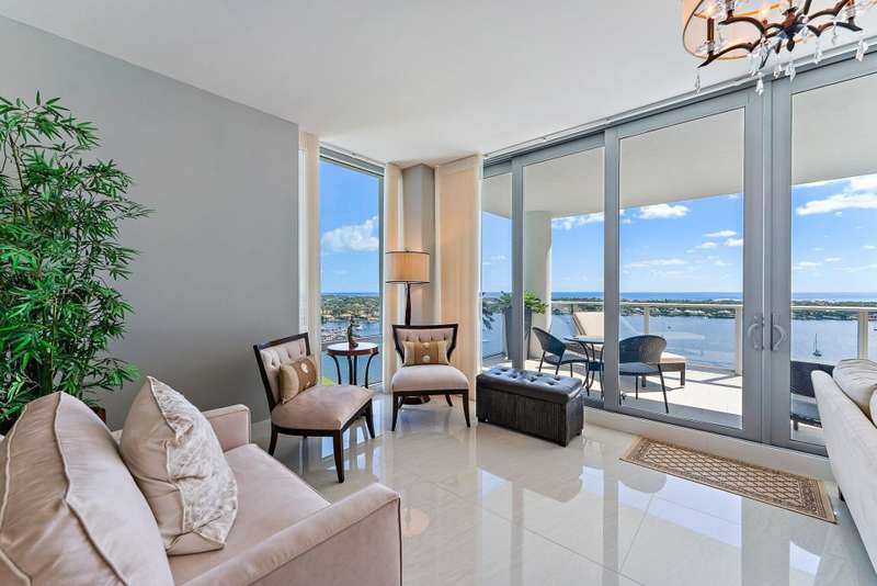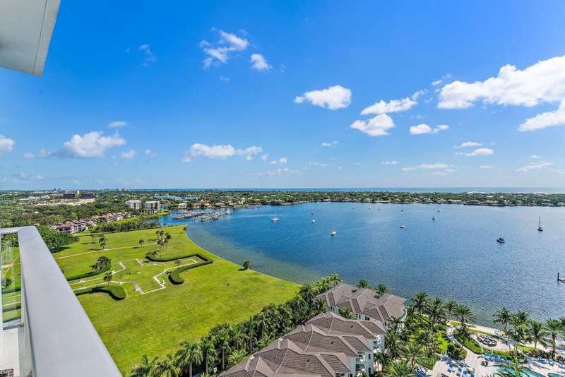 Enjoy amazing views to the ocean, Lake Worth Lagoon, and as far as they eye can see from this ultra luxury Azure floor plan in Water Club. The Azure model is the largest floor plan of the four regular stacks in the first two towers of the community. This unit also has a den/office that could serve as bedroom # 4 because it has a full bath and sleeper sofa. Best of all, Water Club has world class amenities like 24/7 manned and gated security, private elevator lobbies, covered parking, a private clubhouse, resort style pool, lap pool, fitness center with yoga/pilates studio, spa, fire pits, pickle ball court, guest suites, and more..