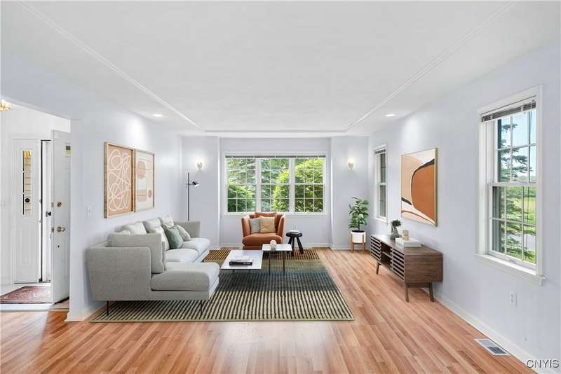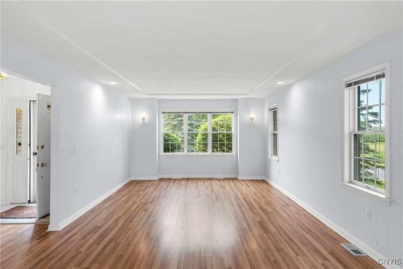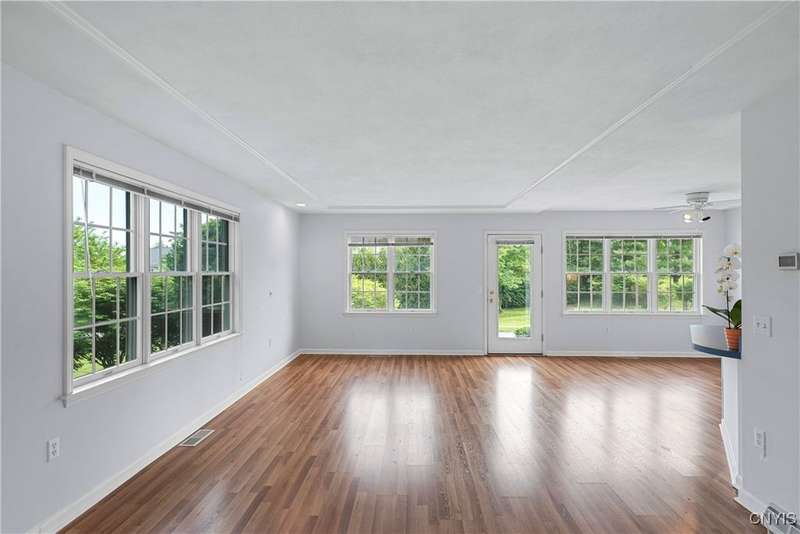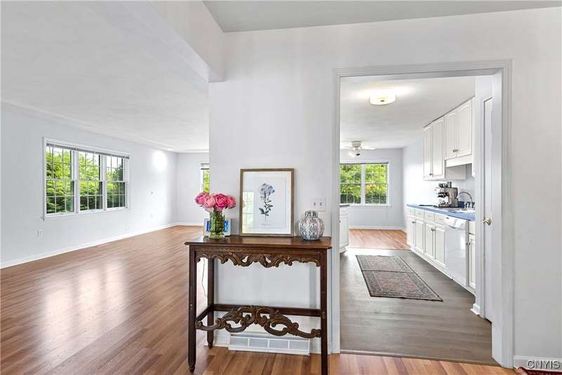 Nestled in Whitegate, among Skaneateles Village's most sought-after areas, this single-level home offers 3 bedrooms and 2 bathrooms with a flowing layout that fills the main floor with abundant sunlight, establishing an inviting and airy ambiance. Situated at the entrance of a peaceful dead-end street, the home enjoys seclusion within a scenic, garden-like environment. The owner's suite features a walk-in closet and a step-in shower designed for ease and comfort. Below, the undeveloped lower level provides unlimited potential for personalized modifications, while an attached two-car garage adds practical convenience. The backyard faces south and includes a brick paver terrace ideal for soaking up sunshine throughout the day, with natural borders ensuring complete privacy and peace. Only a short distance from Skaneateles Village Center, this low-maintenance residence allows pedestrian access to delightful retail destinations and the crystal-clear lake, plus the benefit of municipal water and sewage connections. Updated HVAC and roofing systems offer long-term reliability and assurance. This distinctive property presents an uncommon chance to reimagine and craft your ideal living space according to your personal aesthetic while embracing the tranquil appeal of Central New York's premier residential communities.