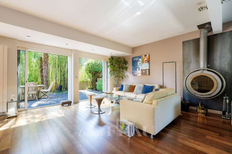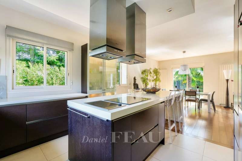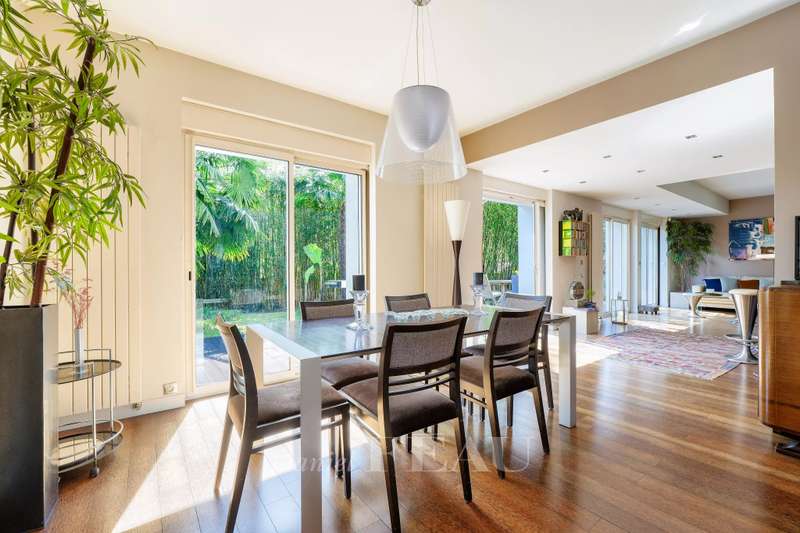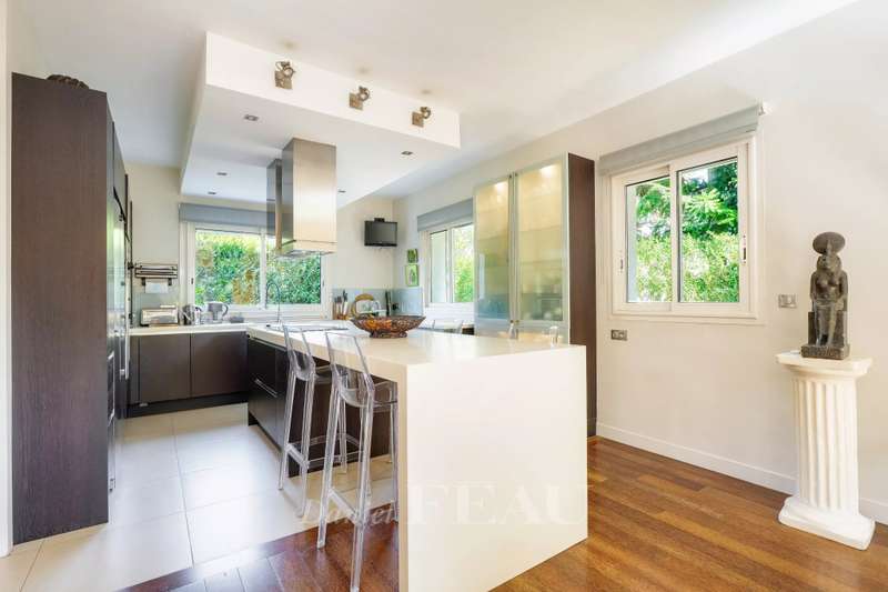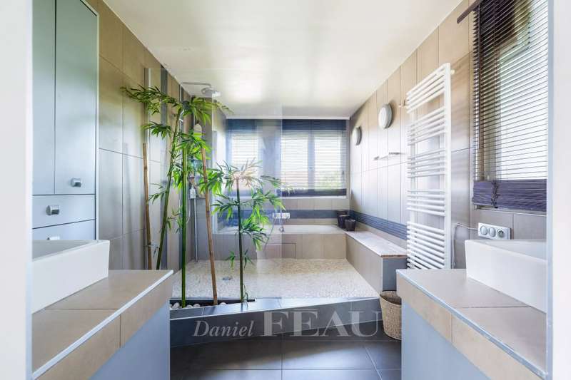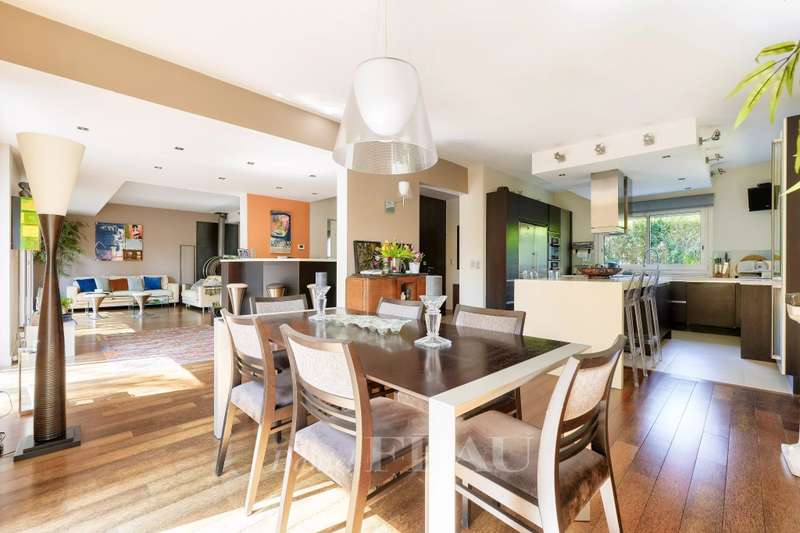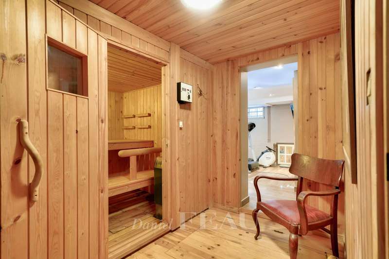 This family home nestled in greenery and set in an enclosed 526 sqm plot offers 320 sqm of floor space and about 230 sqm of living space. In very good condition, it includes a spacious living/reception room with a fireplace and a bar opening onto a terrace and the garden, a dining area, and a spacious kitchen with dining facilities. Upstairs are a master suite with a bath/shower room, dressing room and wc, three further bedrooms and a shower room. A spacious study is on the top floor. On a total basement benefiting from natural light and comprising a spare bedroom, a fitness room with a shower room, a sauna, a utility room, two storage rooms, a wine cellar, a wc and a double garage. With parking space for up to six cars. An ideal family home near the shops, the schools and the transport networks.