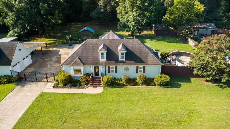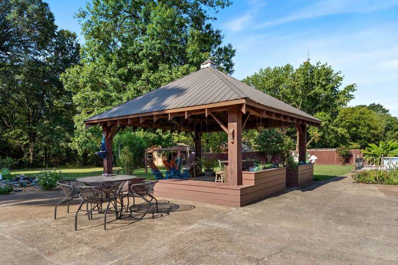 Welcome to this inviting 4-bedroom, 2-bath home with double garage, carport and RV cover situated on a sprawling 2.73-acre lot in Memphis. Ready for your own outdoor paradise with easy access to city? Step outside to discover an entertainer's dream: a covered back porch, expansive deck, gazebo, pavilion, a firepit, and an above-ground pool (owner has new liner to be installed)?perfect for gatherings with family and friends. The large, fenced backyard with a wrought iron driveway gate ensures both privacy and security. Additional highlights include: Low-maintenance design inside and out. Oversized double garage and carport. Plenty of room for hobbies, projects, or extra storage. Large lot providing space to relax, garden, or play. Storage shed. home blends comfort, functionality, trails in the woods and outdoor enjoyment all in one?don't miss your chance to make it yours! Plenty of room to store your toys or equipment! Ready to make S'mores!