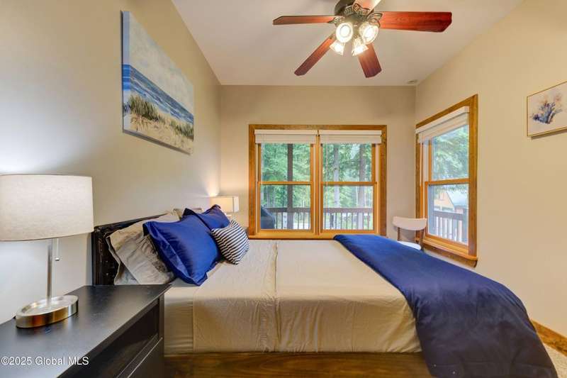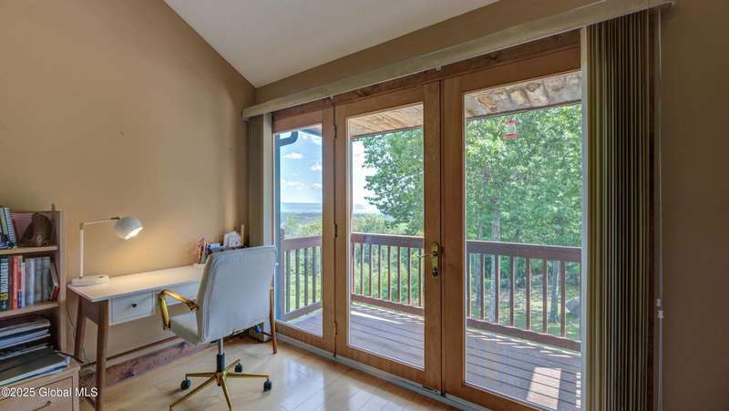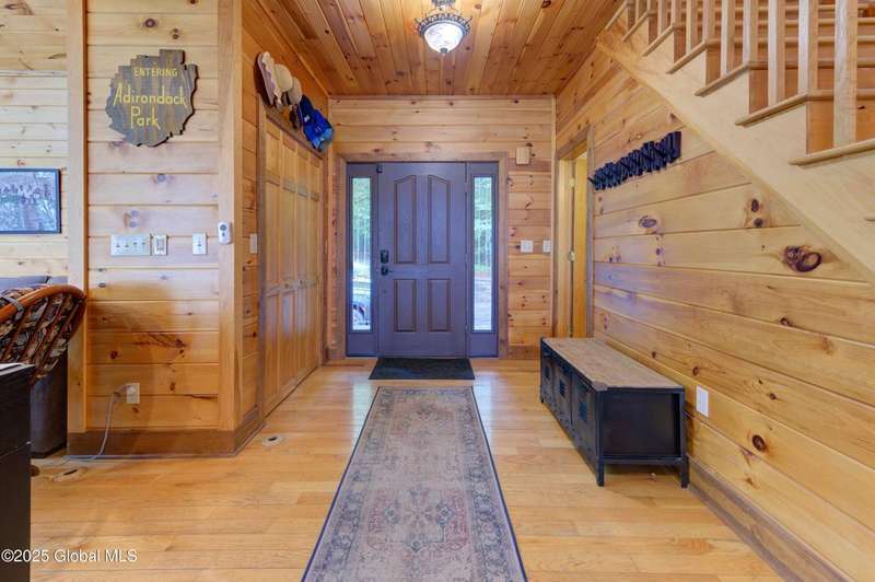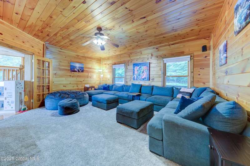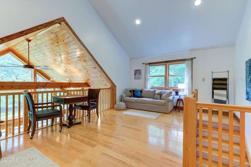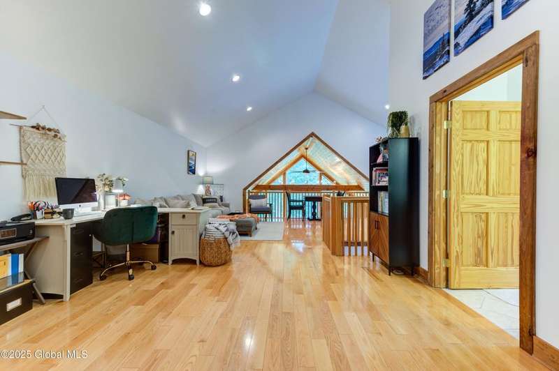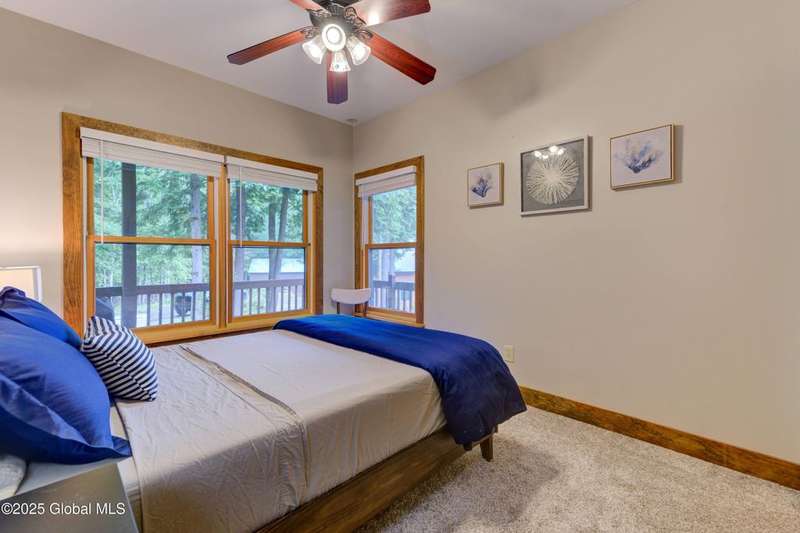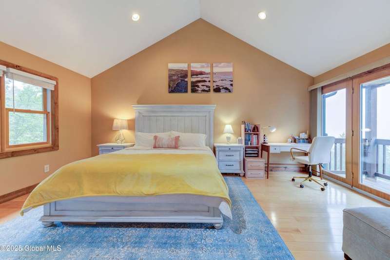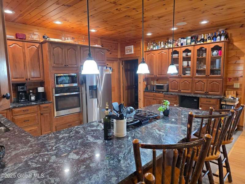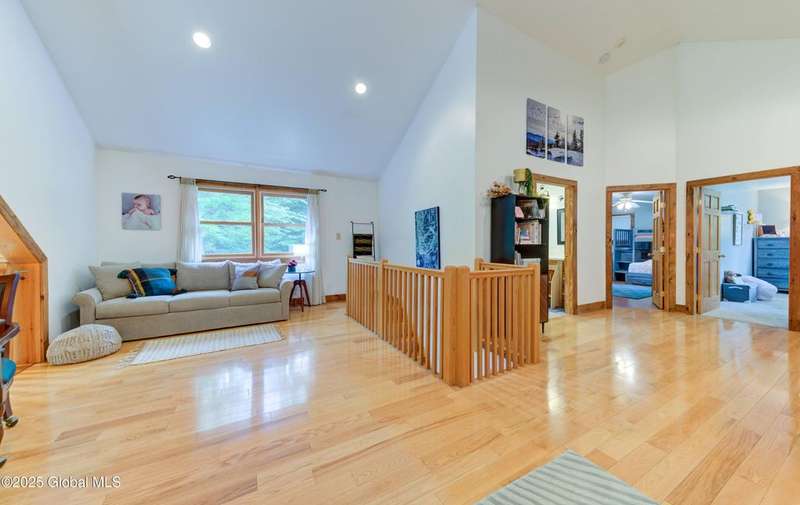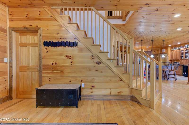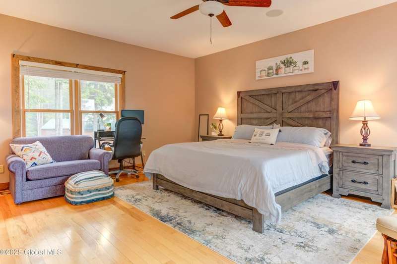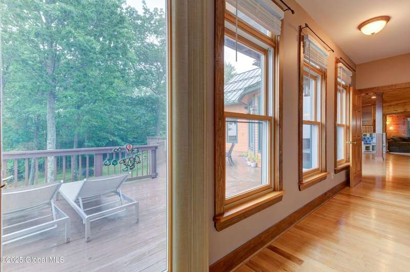 Discover the pinnacle of ADK living in this 6 bedroom 4.5 bath custom-built residence, set atop 43 secluded mountain acres w/ sweeping views of Great Sacandaga Lake. This home has been crafted for both luxury & comfort. Great room w/ vaulted ceilings, a stone fireplace, & custom woodwork. Gourmet kitchen features stone countertops & a large peninsula for casual eat-in dining, plus large dining space w/spectacular views. Two spacious primary suites, each with walk-in closets & en-suite baths; one w/private access to a sunroom / artist's studio; the other w/ a private balcony. Inviting, large front porch & expansive decks. Walk out basement w/ gym & dedicated hot tub room for ultimate relaxation. Detached heated garage currently functioning as a woodshop, plus newer metal barn.