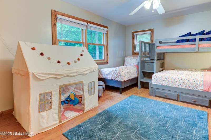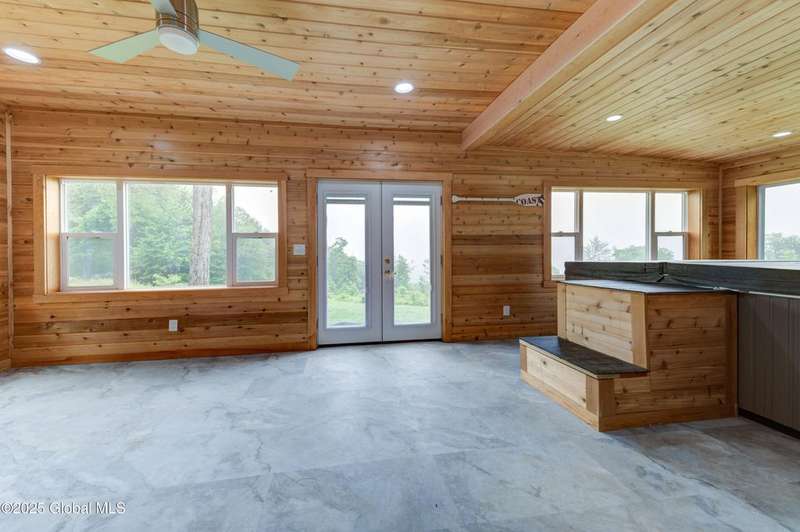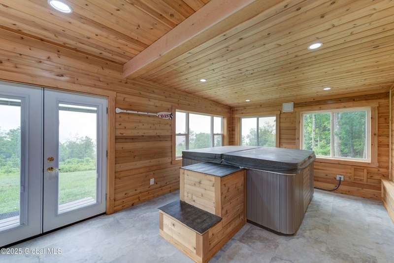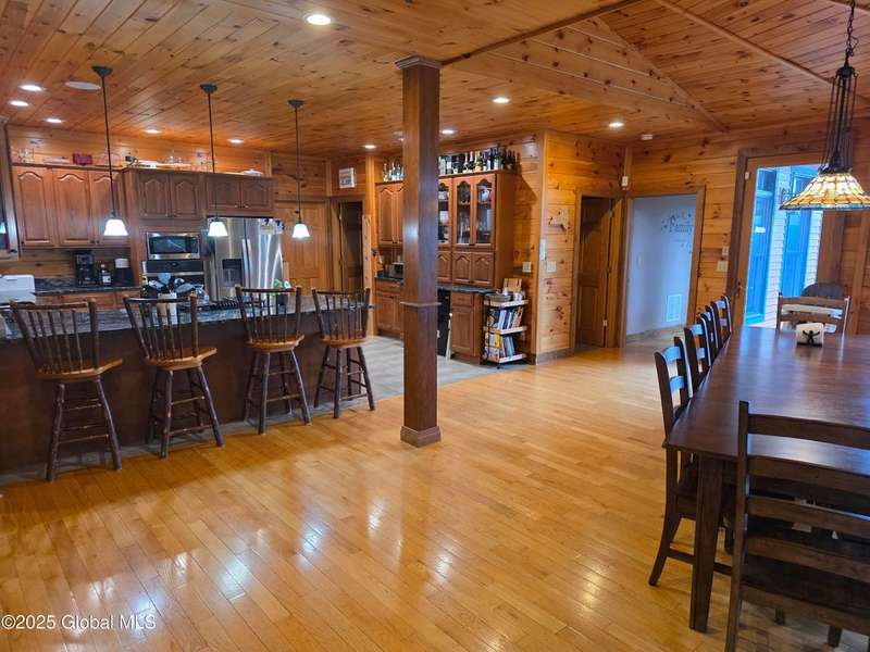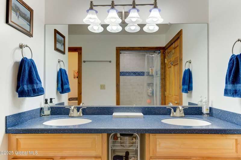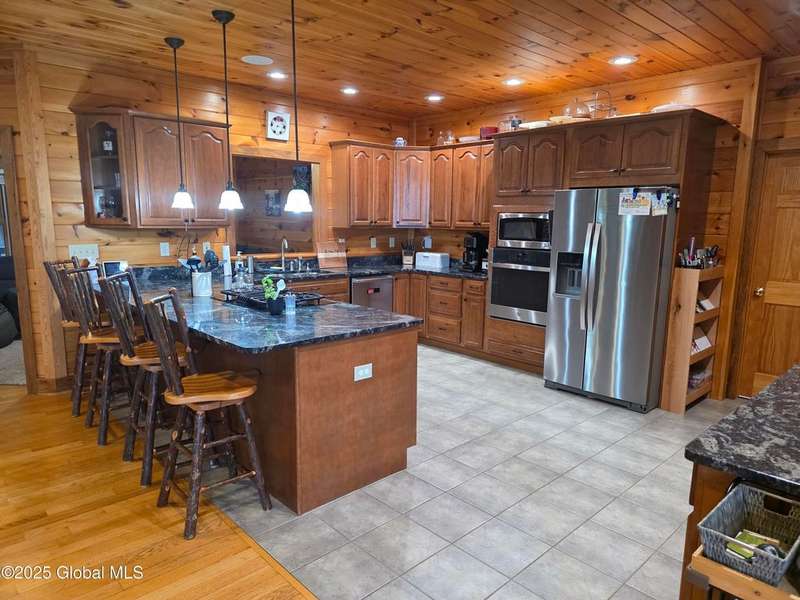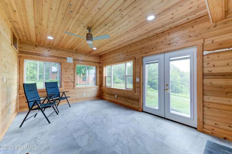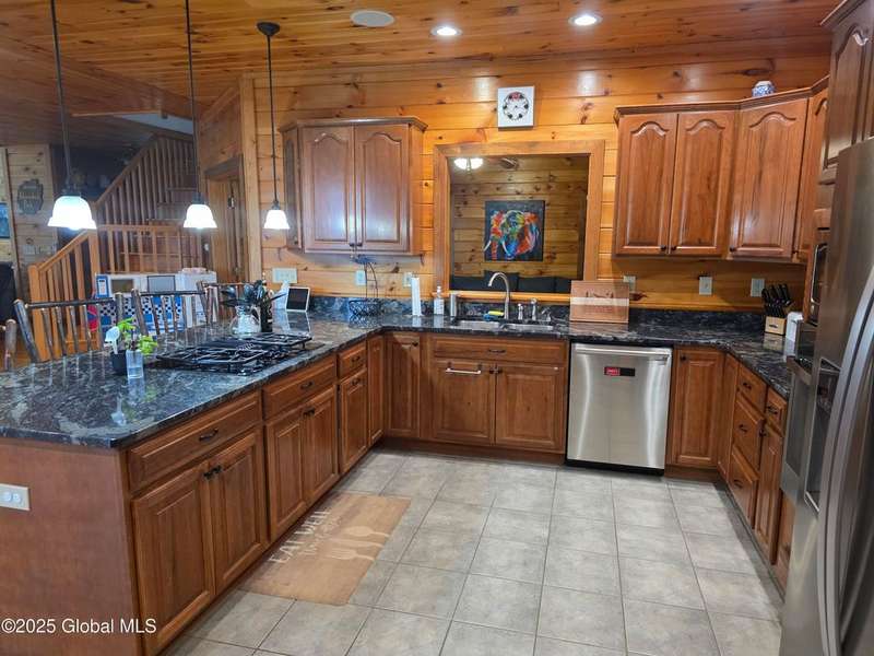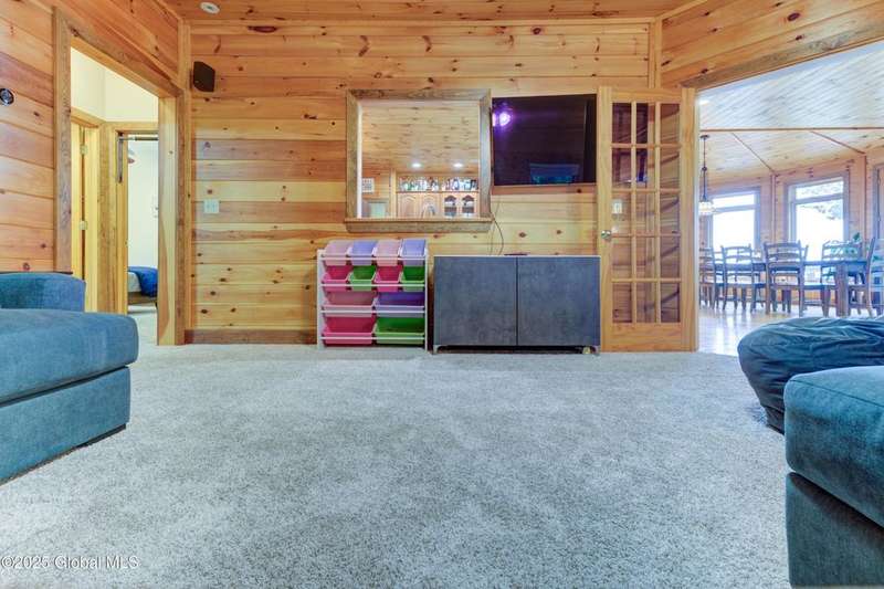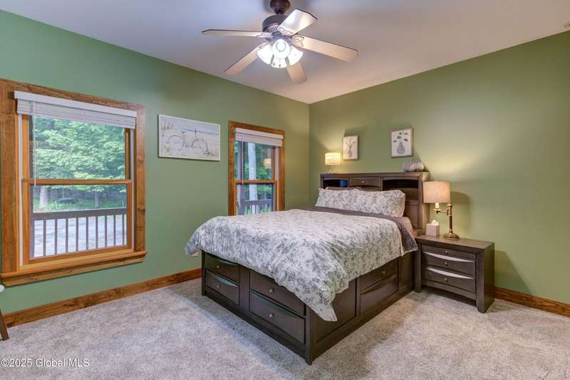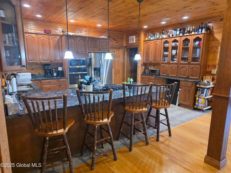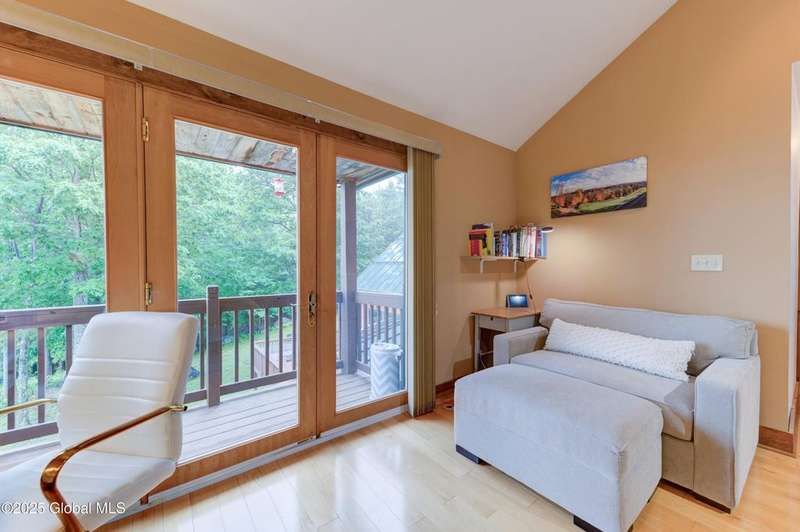 Discover the pinnacle of ADK living in this 6 bedroom 4.5 bath custom-built residence, set atop 43 secluded mountain acres w/ sweeping views of Great Sacandaga Lake. This home has been crafted for both luxury & comfort. Great room w/ vaulted ceilings, a stone fireplace, & custom woodwork. Gourmet kitchen features stone countertops & a large peninsula for casual eat-in dining, plus large dining space w/spectacular views. Two spacious primary suites, each with walk-in closets & en-suite baths; one w/private access to a sunroom / artist's studio; the other w/ a private balcony. Inviting, large front porch & expansive decks. Walk out basement w/ gym & dedicated hot tub room for ultimate relaxation. Detached heated garage currently functioning as a woodshop, plus newer metal barn.
