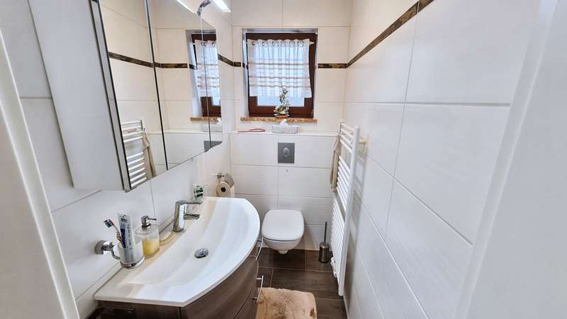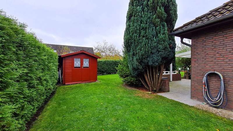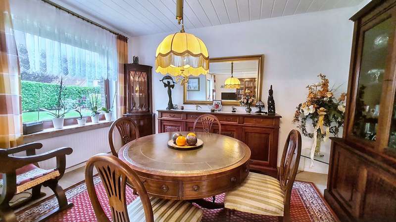Welcome to your new home: This well-maintained bungalow, built in 1980, impresses with its full ground floor and well thought-out room layout on a generous plot of approx. 614 m². The property is located in a mature residential area and is ideal for discerning couples, small families or people who value senior-friendly living. With three spacious rooms, a modern shower room including underfloor heating and bidet as well as a separate guest WC, this bungalow offers a wide range of possible uses. It is even possible to separate a fourth room from the dining area with little effort, just as the floor plan was originally planned. The large window fronts provide pleasant daylight in the living and sleeping areas, which contributes to a friendly living atmosphere. The fitted kitchen is included in the purchase price and harmonizes perfectly with the overall appearance of the house thanks to its modern appliances. Extensive modernization work was carried out in 2014. The bathroom was completely renovated, as was the driveway and the garage door, which is equipped with an electric roller mechanism and guarantees convenient parking. The patio roof, built in 2017, creates a sheltered outdoor area that is ideal for relaxing outdoors. Floor-to-ceiling doors provide barrier-free access to the terrace and the lovingly landscaped garden. Further highlights of the house are the practical garden shed for tools or garden equipment, as well as the existing expansion reserve on the upper floor, which offers you scope for individual extensions or additional storage space. The floors and interior doors, which were renewed in 2018, underline the well-kept condition of this property and convey a pleasant feeling of living as soon as you enter. The central heating system provides reliable warmth throughout the house. Large, ground-floor rooms offer freedom of movement and are also ideal for senior citizens or people with limited mobility. Thanks to the modernization measures carried out, the house is in an extremely well-kept condition - ready for immediate occupancy. A garage with electric roller shutter door is available for cars, offering you a protected parking space at all times. The wide and renovated driveway is also suitable for additional vehicles or visitors. The location in a quiet and mature environment offers a relaxed atmosphere, while all the necessary infrastructure and amenities are just a short distance away. Schools, shopping facilities, doctors and public transport are all nearby. Are you looking for a comfortable, senior-friendly home that is well-maintained and leaves enough space for individual requirements? This property combines modern living on one level with versatile use and attractive extras. Arrange a viewing appointment now and see the benefits of this property for yourself.