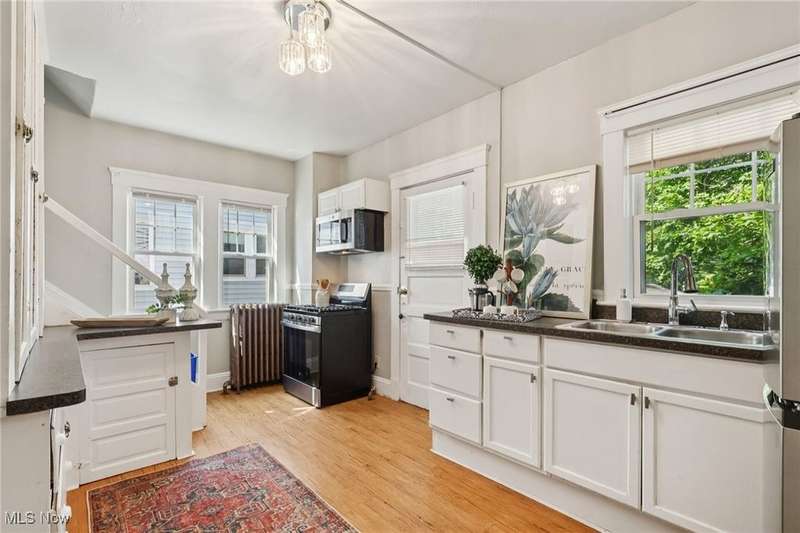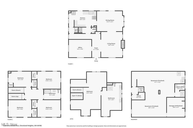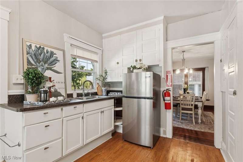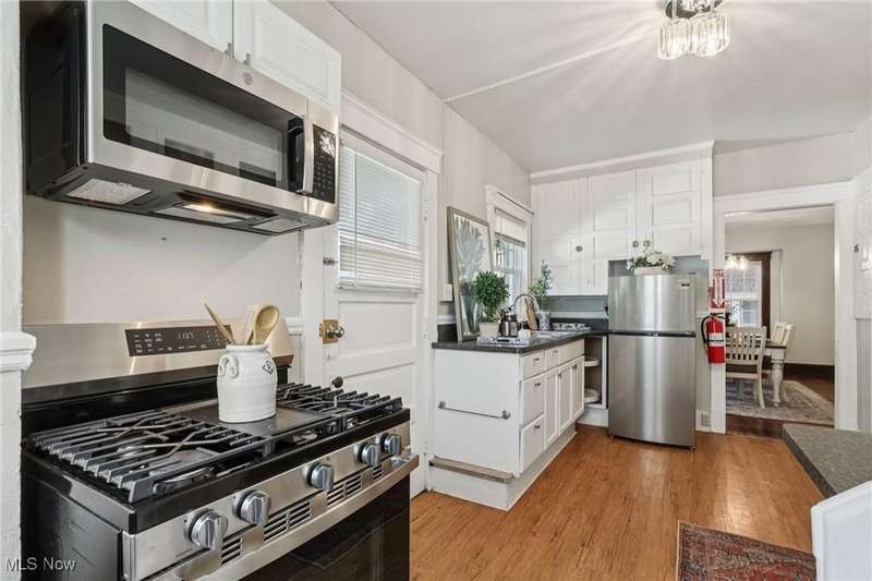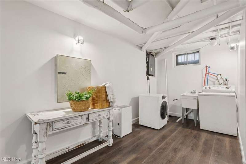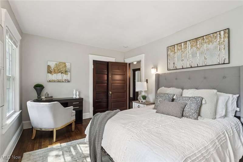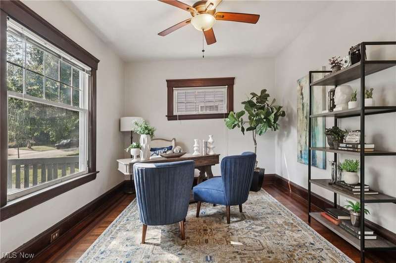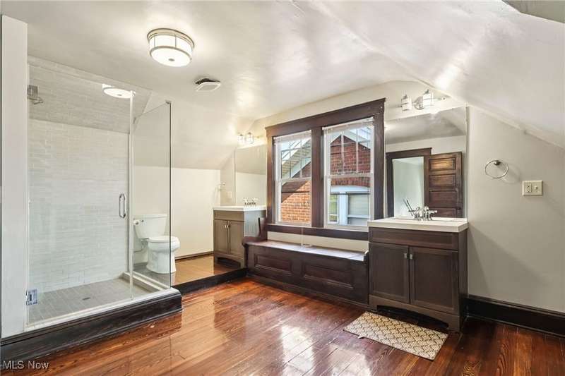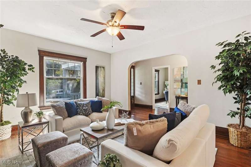 Thoughtful updates and architectural charm in this classic Cleveland Heights front-porch Colonial Revival. Living room with brick hearth and wood mantle greets you off foyer. Bright, white kitchen with stainless steel appliances and some vintage original cabinets, with formal dining room adjacent featuring door to rear deck. First floor half bath and spacious home office finishes the first floor. Rich Red Oak hardwood flooring throughout, and make sure to look in the dining room and living room to see the inlaid Celtic knot pattern - quality and character that is not found in newer homes. 2nd-floor has four well-sized bedrooms with refreshed full bath. Third floor primary suite has a vaulted sleeping area, reading nooks with window benches, much space for dressing area or work desks, and an enormous primary en-suite with double vanity and tiled glass shower. This space adds 786 sq/ft of finished living space not counted in square footage. Newly-waterproofed and finished basement adds yet more living space, a third full bath, as well as a laundry area and storage/utilities rooms. Don't forget the laundry chute, a real convenience in a home this size! Newer vinyl windows throughout. Rear features include 1-car garage, and a natural-state yard you can enjoy from the rear decks. Location is amazing - just steps to Cedar/Fairmount restaurants and shops, a jog or short bike ride to Case/Cleveland Clinic/UH/University Circle, and a short jaunt downtown. Or go the other way and find Doane Brook hiking a 5-minute walk from your home. Point-of-sale compliant!