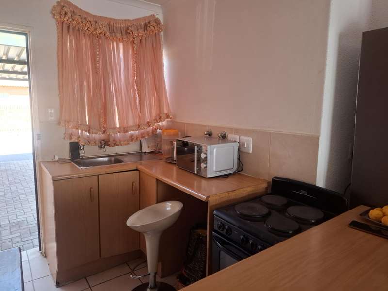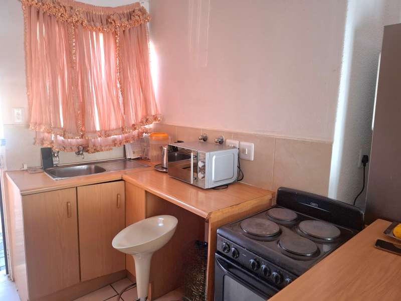 If you are looking for a neat and clean lock up and go, this is the one. It's low maintenance with a private small garden. Located in a well maintained complex. Offers open plan living area with a fitted kitchen and a stove. 2 Bedrooms with build in cupboards. 1 Well sized bathroom with bath, basin and toilet. 1 Carport for 1 car. Security bars and gates. Automated access into complex. Price to go. Call for a viewing.