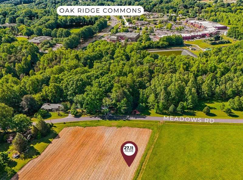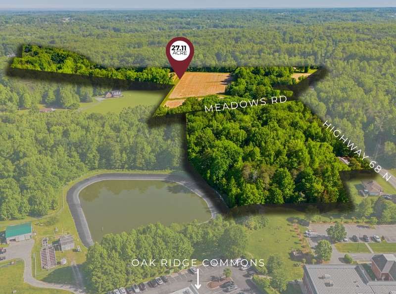 Expansive, beautiful 27+ acre parcel located across Meadows Drive in the very heart of Oak Ridge. Property includes one existing residential home being sold at no value, offering a fantastic opportunity for potential subdivision. Zoned AGRI/HORT with potential for rezoning. This lovely piece of property is in the OR Town Core so allows for potential higher density lots. Road frontage on HWY 68 & on Meadows Rd. Enjoy close proximity to Oak Ridge Town Park, grocery stores, medical and dental offices, and local dining. Centrally located?just 12 minutes to PTI Airport, 11 minutes to downtown Kernersville, and under 25 minutes to both downtown Greensboro and Winston-Salem. May be combined with adjacent 7+ acre parcel (MLS #1180568) for a total of 34+ acres. Endless possibilities in a prime location!