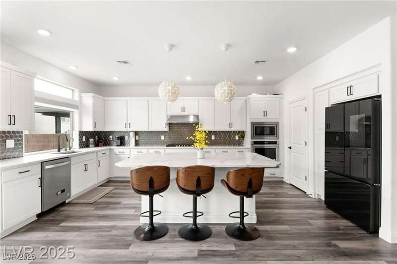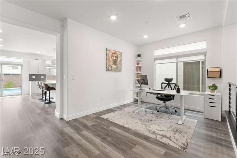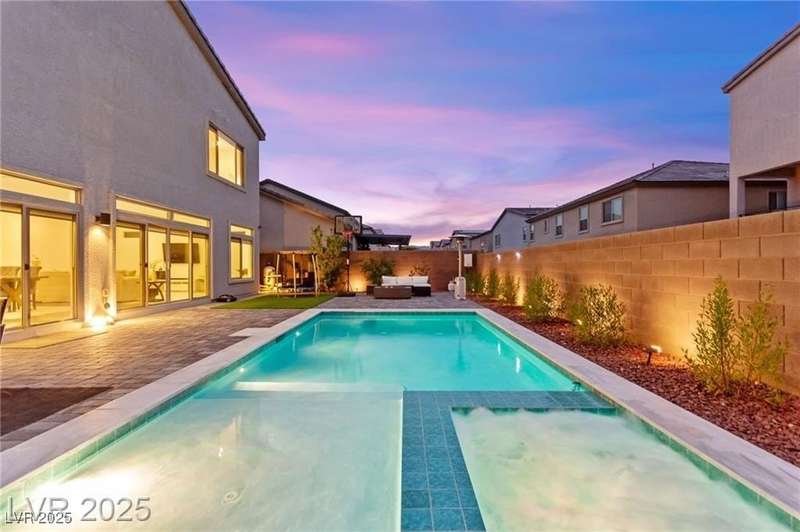 Welcome to this stunning 4 bed, 3.5 bath home built in 2023, located in the sought-after Rainbow Crossing Estates in the Southwest. This modern home offers an open layout with luxury vinyl plank flooring, a chef’s kitchen with a large Quartz island, and premium upgrades throughout. Flexible downstairs spaces work perfectly as a home office, dining room, or game room, while the oversized loft upstairs is ideal for a home theater or family hangout. The spacious primary suite provides comfort and privacy, and all bathrooms feature upgraded Smart toilets. Outside, enjoy a heated pool, spa, turf, pavers, outdoor shower, and natural gas fire pit—perfect for entertaining year-round. Additional features include a 3-car garage, tankless water heater, EV charger, and a 7-stage whole-home water system. With top-rated schools nearby, this move-in ready home offers comfort, convenience, and luxury in one incredible package.
