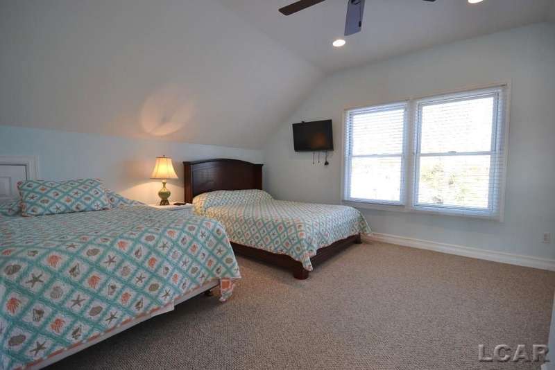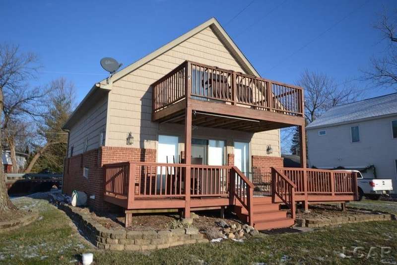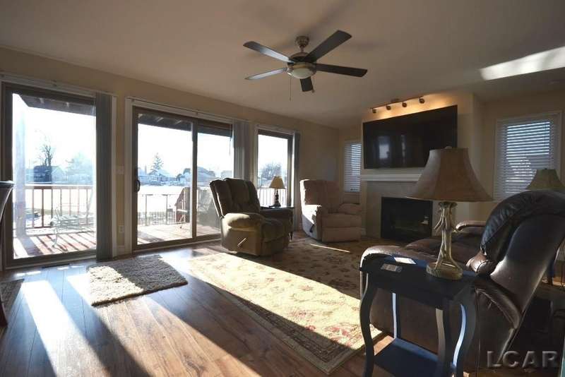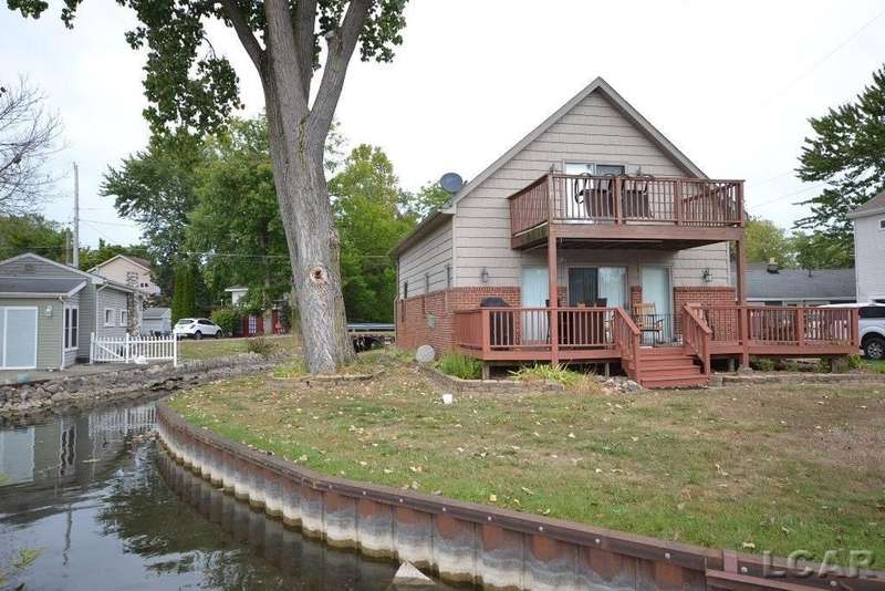 Live the lake life in this stunning two-story waterfront home, offering an open-concept floor plan designed to maximize the incredible views of Round Lake and Devils Lake. Located on a large, private lot with water access on two sides, this property provides the ultimate retreat for relaxation and outdoor adventure. Enjoy the convenience of a spacious bedroom on the main level, along with a full bathroom that leads directly into the kitchen area. Featuring beautiful granite countertops, stainless steel appliances, a counter bar for casual dining, and plenty of pantry storage?perfect for preparing meals while enjoying panoramic water views. Relax in the living room with a cozy gas fireplace, The adjacent dining room is perfect for hosting guests and offers a space to entertain. Upstairs, the luxurious master bedroom boasts a vaulted ceiling and sliding doors that lead out to a private balcony. Sip your morning coffee and take in the serene lake views right from your own sanctuary.