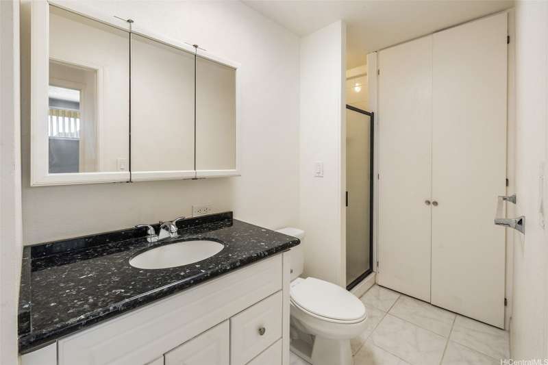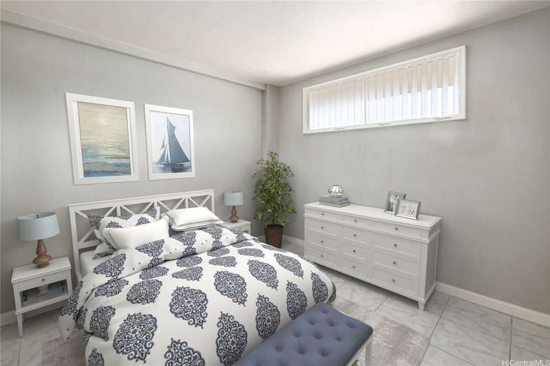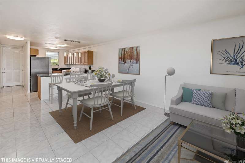 New unbelievable price for this partially remodeled unit!! Nicely upgraded 2 bedroom 1.5 bath Meridian East condo with a tree top view and and cooled by tradewinds coming in from Kailua Beach. Centrally located in Kailua Town - everything is close including shopping, restaurants, schools, and best of all, beautiful Kailua Beach! Nice cool tile flooring, remodeled kitchen, plantation shutters, new windows, newer appliances and new light fixtures are just some of the upgrades in this unit. Well maintained building with very reasonable maintenance fees which includes a secure entrance, a swimming pool with an adjacent covered entertainment area, storage closets, and gated covered parking.