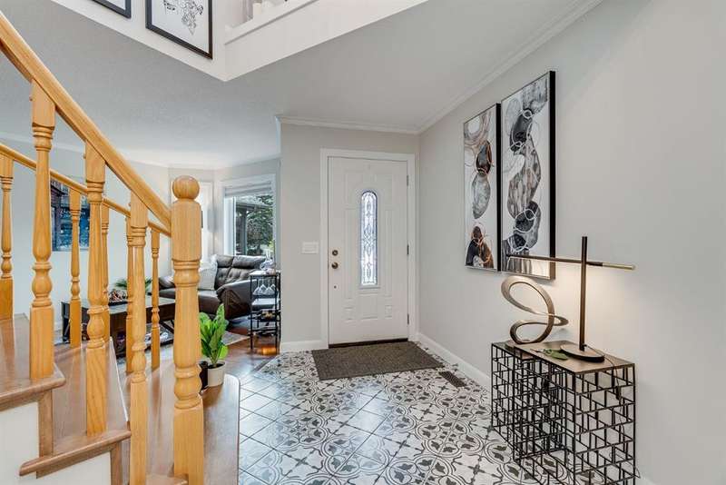This Woodside home is steps away from the first Tee box and it’ll be your NUMBER 1. A thoughtfully laid out home begins with an upgraded tile entry way, curved grand staircase and a lovely sitting area. Your HEATED garage (and additional washer/dryer hookup) are through your designated mudroom space. This spacious garage comes equipped with plenty of built in storage! Down the hall is a half bath and the open family room, dining room, and kitchen space. This open concept area is fit for entertaining and includes views of the EXCEPTIONALLY maintained garden yard. Upstairs you’ll find two well appointed bedrooms, and the primary suite with upgraded walk in shower. Head down into the basement to find a FOURTH BEDROOM, flex/recreation space, as well as an additional half bath. This home has been heavily upgraded since 2020. Upgrades include: New floor tile on main floor, new backsplash tile in kitchen, painted with fresh trim and baseboards in 2022, TRIPLE PANE WINDOWS this year including a NEW sliding patio door, Updated light fixtures throughout home, ALL NEW TOILETS, Fridge 2023, Dishwasher & Stove in 2021, BUILT IN holiday home lights, SMART back fountain, Water Softener, NEW FURNACE 2023, NEW HOT WATER TANK 2024, New Window Coverings, THE LIST GOES ON. Call your favorite Realtor today to book a showing and snag this family home in coveted WOODSIDE.