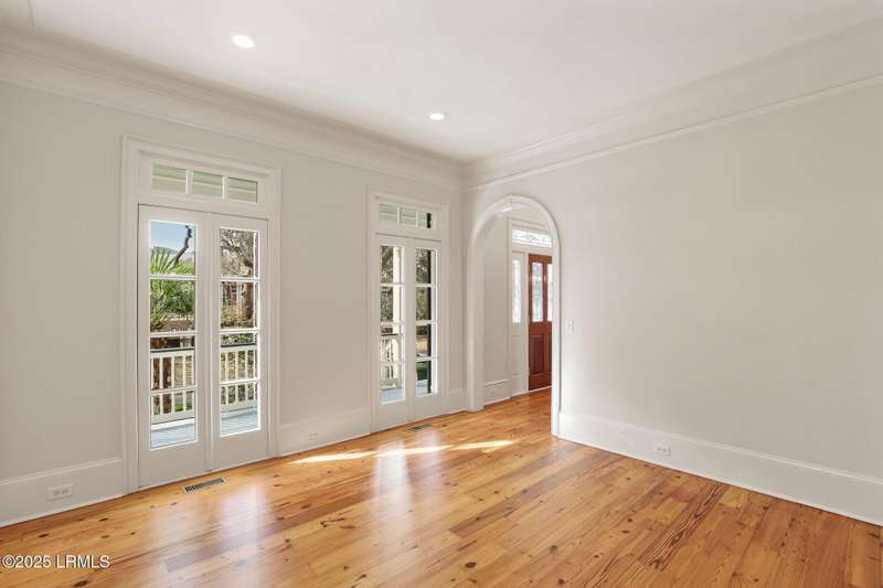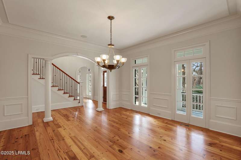 Located at 381 Fripp Point Road, this stunning Lowcountry home offers over 4,300 square feet of luxurious living space with breathtaking views of the marshes & deepwater of Coffin Creek & the Morgan River. Enjoy spectacular vistas of the southern tip of the Ace Basin, Edisto Island, and Morgan Island, making this a truly remarkable waterfront property. The home features a spacious and open layout, with the primary suite conveniently located on the first floor. The bedroom has a screened in porch and overlooks the stunning view. The primary bathroom offers a luxurious steam shower, a walk-in whirlpool tub, and elegant fixtures. The large gourmet kitchen boasts custom honey maple cabinets, granite countertops, Subzero and stainless steel appliances, as well as a large bar area in the great room, complete with a new ice maker, wine refrigerator, and sink perfect for entertaining. The great room includes a gas fireplace and offers a seamless connection from this room to the deck to the expansive outdoor scenery. Flow to the beautiful living room and formal dining room for extra entertainment areas. Upstairs, you'll find four freshly painted and newly carpeted bedrooms, 2 full baths and a spacious common area. The interior has been freshly painted and features newly refinished heart pine floors throughout. The primary bedroom has a screened in porch and overlooks the stunning view. This home is designed for convenience, with an elevator providing easy access from the garage to the top floor, full house generator, a central vacuum system, and two Rinnai hot water heaters. Other notable features include lovely wainscoating, crown molding, beveled glass windows and transoms, a laundry chute straight in to the laundry room from the upstairs bedrooms, an outdoor shower,expansive decks, and ample storage space, including a walk-in attic. The deepwater dock ideal for boating and waterfront activities. Not included in the square footage is an expansive 2,500 + square feet of garage space that offers room for two cars and more, along with a massive amount of storage. This versatile space includes two more separate rooms with a full bath, perfect for a variety of uses such as storage, an exercise room, or a garden room. Limitless possibilities await. There's ample room for boats, kayaks, sporting equipment, or even game space. Additionally, a large room features wood flooring, a HVAC system, full bath, kitchenette, built-in bed, ideal for a home office or guest suite. This exquisite property offers the perfect combination of luxury, comfort, privacy, quiet and unparalleled views in one of the most desirable locations in the Lowcountry. This material is based upon information, which we consider reliable, but because it has been supplied by third parties, we cannot represent that it is accurate or complete, and it should not be relied upon as such.