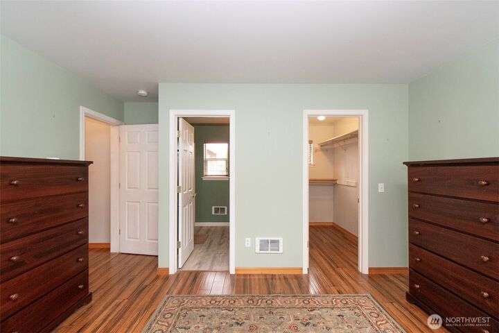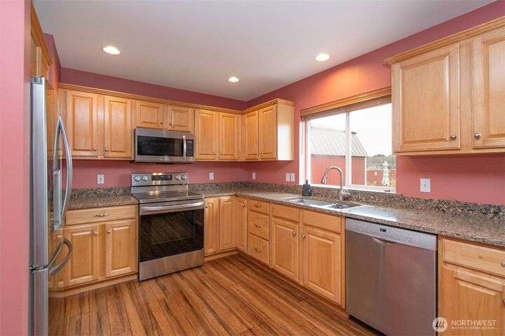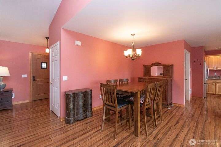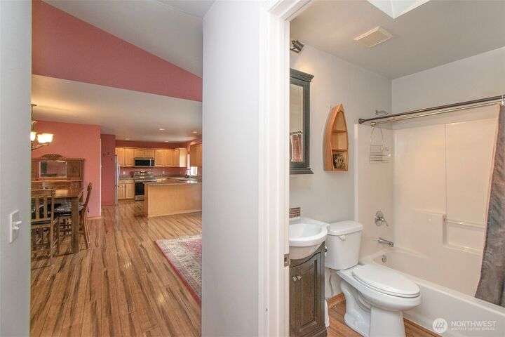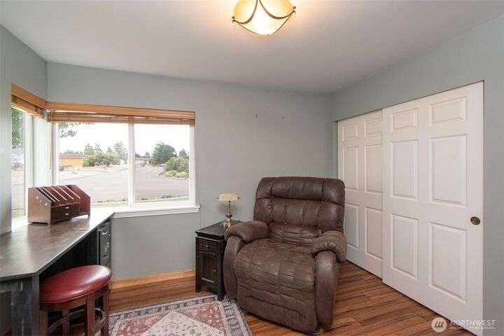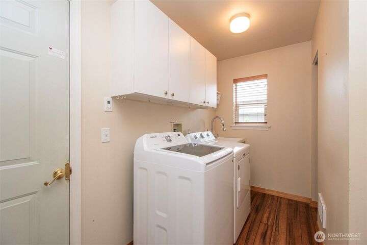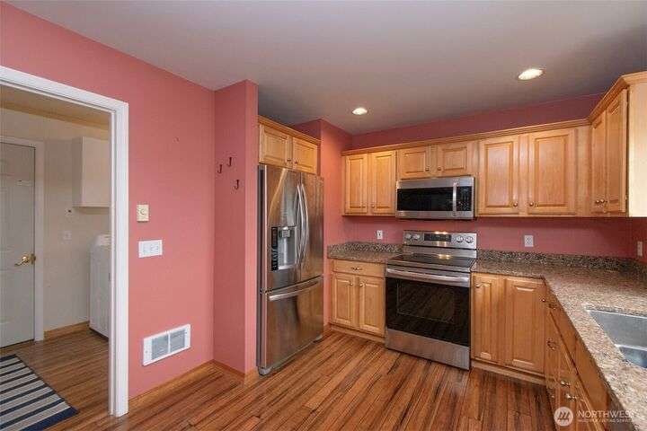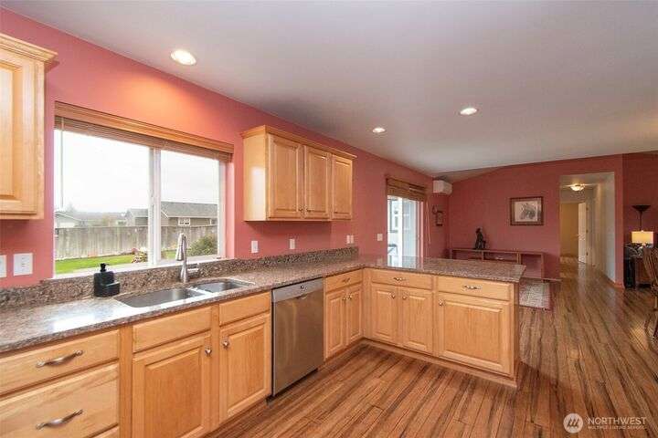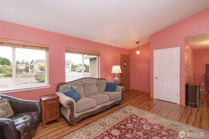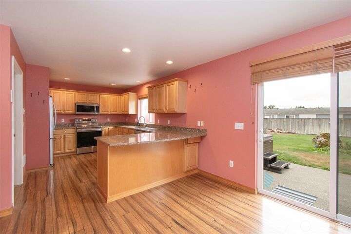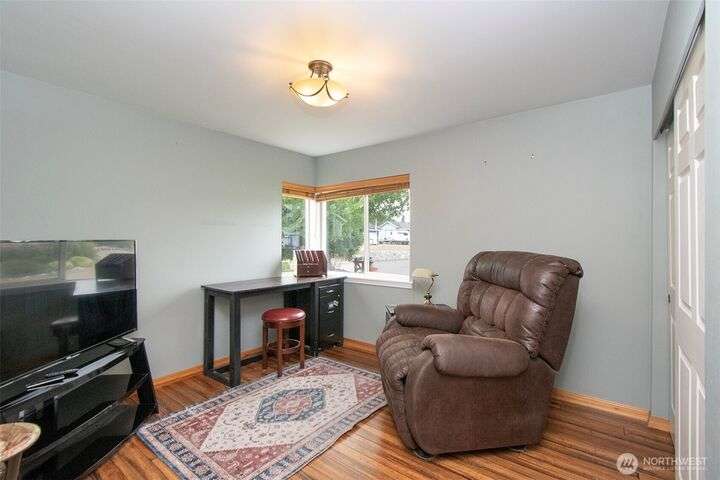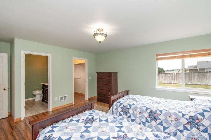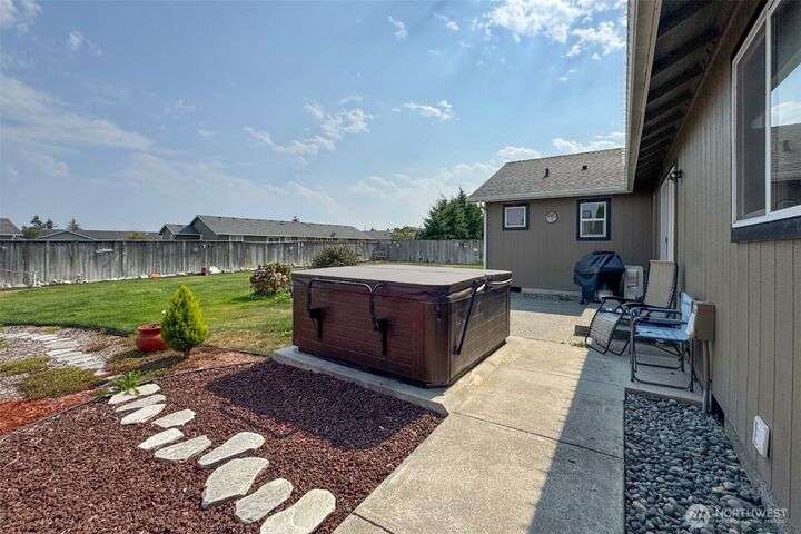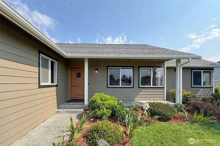 Updated, updated, updated! This 3 BR & 2 BA home has been extensively remodeled - Quartz counters in kitchen, painted inside and out, updated bathrooms, and front & garage doors replaced. Excellent quality appliances and ductless heat pump included. Bamboo floors throughout. Tastefully chosen colors & finishes. Immaculate. Located within walking distance of library, schools, restaurants, retail, medical, dental & professional businesses. Room to entertain inside the home & in the lovely fenced private backyard with a concrete patio. Parking space on north side of garage accommodates an RV and has septic, electric and water. There is a large garden shed for storage and the backyard is completely fenced. Beautifully landscaped.
