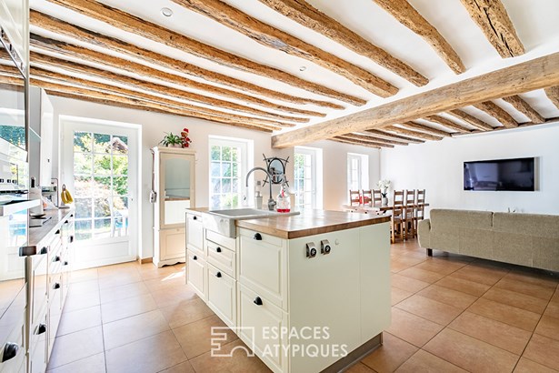 This bright and very comfortable renovated character house is located in the pretty and attractive village of Plailly. Sheltered from view, close to all amenities, very well maintained, rational and fluid, everything here is optimized: light, room volumes, quality materials and perfect insulation. This without forgetting the large terrace which overlooks the landscaped courtyard and the garage and its mezzanine.