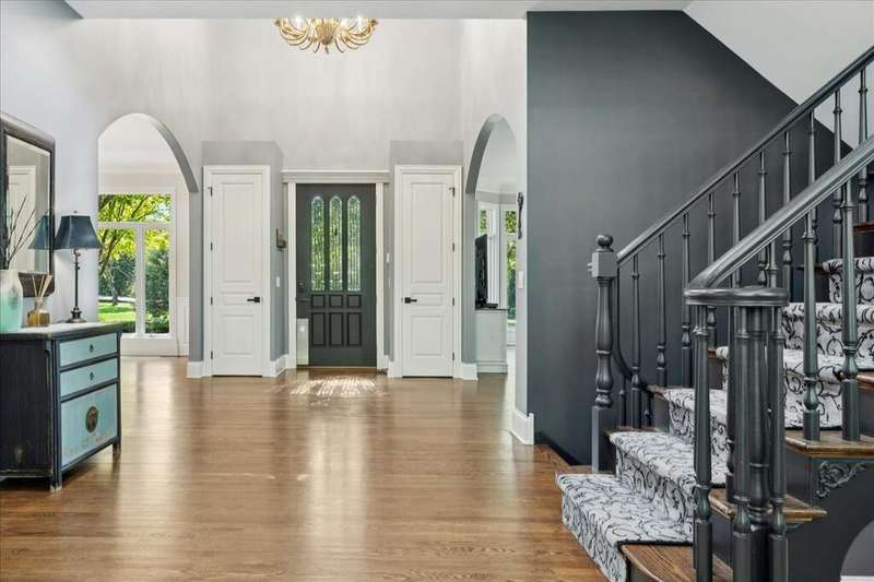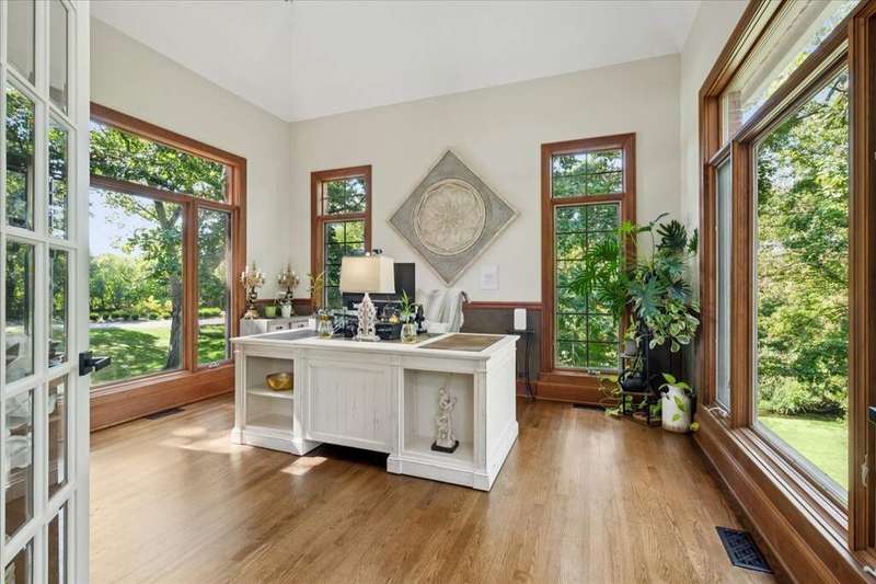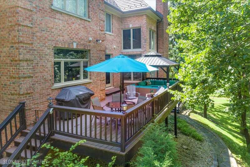 This magnificent all-brick estate rests on a prime 1.2-acre cul-de-sac lot in prestigious Wynstone, a premier gated golf course community. Designed for modern living, it is surrounded by serene wooded views and showcases an open, light-filled floor plan with 10-foot ceilings, expansive windows, and beautifully crafted details throughout. A grand two-story foyer sets the stage with sightlines to the dramatic great room and is flanked by a formal living room and elegant dining room with butler's pantry-ideal for entertaining. The great room impresses with soaring ceilings, a fireplace, and sweeping wooded vistas, while the gourmet kitchen features granite countertops, high-end appliances, walk-in pantry, breakfast bar, and a sunny breakfast room with French doors opening to the deck and gazebo-ideal for alfresco dining or evening cocktails. Two versatile offices provide flexible options for work or relaxation. A spacious mud/laundry room with custom built-ins connects to the heated four-car garage, while two powder rooms complete the main level. Upstairs, a loft landing overlooks both the entry and great room. The primary suite is a luxurious retreat with a sitting area, spa-like bath, and expansive walk-in closet with dual islands. Three additional bedrooms, each with walk-in closets and private ensuite baths, provide comfort and privacy for family and guests. The finished lower level is designed for entertaining with a sprawling rec room with fireplace, billiards area, wet bar, full bath and even a removable stage. A versatile game room with mini-sports court and a fitness room with deck access leading to an outdoor hot tub add to the impressive list of amenities. Additional highlights include a new DaVinci faux shake roof (2023), newer driveway & HVAC systems, dual decks connected by a stone path, exterior landscape lighting, and meticulous maintenance inside and out. Enjoy the resort lifestyle of Wynstone, featuring a Jack Nicklaus-designed golf course, tennis, clubhouse, and 24-hour security-all within the award-winning Barrington School District and close to shopping, dining, and conveniences. An exceptional offering in one of the area's most coveted communities.