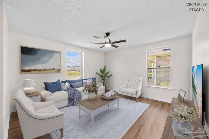 Welcome to a beautifully updated 4-bedroom, 2-bathroom home, perfectly designed for modern living. This move-in ready home showcases fresh paint throughout, stylish new flooring, and a bright, open layout ideal for everyday comfort and entertaining. The fully updated kitchen features new cabinets, sleek countertops, and brand new stainless steel appliances, offering both function and elegance.With a brand new HVAC system and a fully fenced backyard for entertaining or relaxing. Both bathrooms have been refreshed with tasteful finishes, while the four spacious bedrooms provide flexibility for families, guests, or a home office. With quality updates inside and out, and a location just minutes from shopping, dining, schools, and parks, this home is a fantastic choice for first-time buyers or investors seeking a turn-key opportunity.