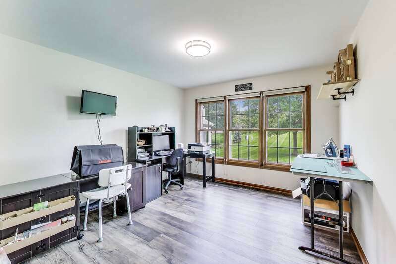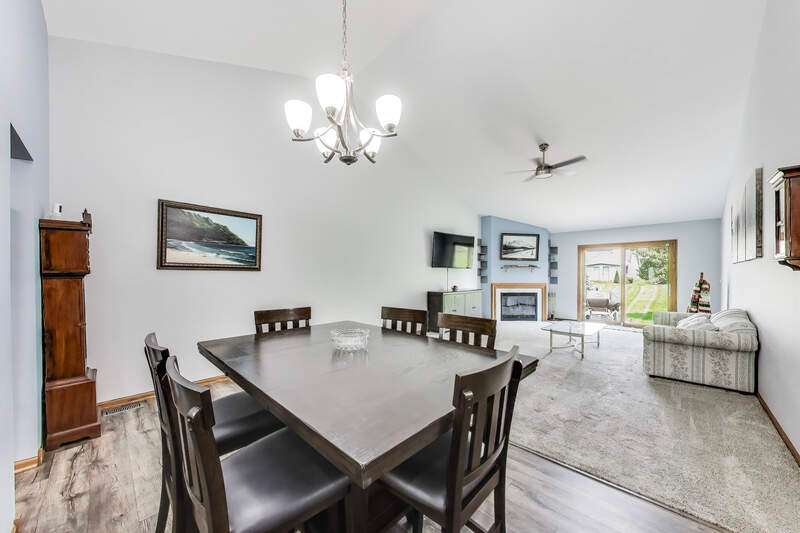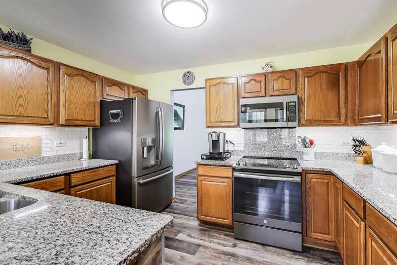 This could be the one that checks all your boxes! Located in the sought-after Carillon Subdivision, this well-maintained ranch home features an open floor plan with soaring vaulted ceilings and a full basement offering a large family room, flex space, workshop, and ample storage. Thoughtfully designed with attention to detail, you'll find updates and upgrades throughout: new carpet and laminate flooring (2020), updated kitchen and bathrooms (2020), underground sprinkler system (2019), high-efficiency furnace (2014), newer dishwasher, reverse osmosis system, and a 50-gallon water heater (2011). Major exterior improvements include roof, siding, gutters, and soffits (2009). Enjoy the convenience of main-floor laundry (2018) plus a second laundry area in the basement. Other highlights include 200+ amp service with extra outlets, Watch Dog battery back-up system, whole-house AprilAire humidifier, premium windows, Hunter Douglas top-down/bottom-up blinds, and ceiling fans throughout. The home offers 3 full baths with fully tiled walk-in showers, including a luxurious primary bath with a Kohler jetted tub and double sinks. Cozy up by the gas fireplace, relax in the vaulted master suite, or step outside to the custom front walk and raised garden beds. The insulated garage door is another thoughtful touch. Book your showing appointment today!