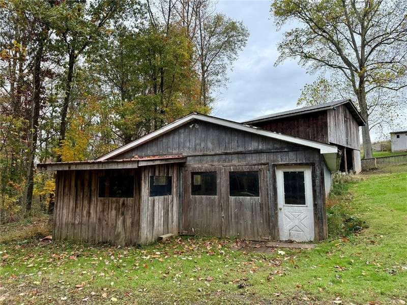 Peaceful country farmstead on 3.187 acres with a spacious five bedroom farmhouse and multiple barns and outbuildings. The home is currently operational without electricity and features a motor powered water well and septic or holding tank. It is wired with an electrical panel allowing for easy connection to main electric service if desired. Several garden areas are ready for planting and there is plenty of space for animals, equipment, or workshops. A large front porch overlooks open fields and rolling countryside. This working farm offers flexibility for off grid living, traditional agriculture, or small scale homesteading. A rare opportunity to enjoy a simpler, self sufficient lifestyle in a beautiful rural setting with room to grow, work the land, and make it your own.