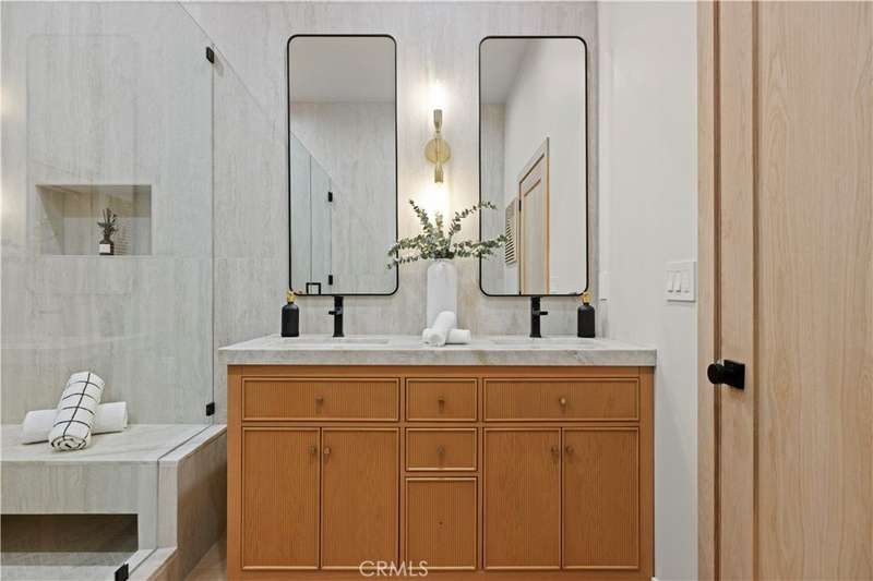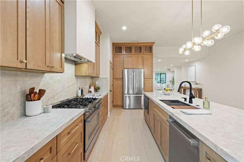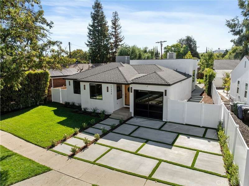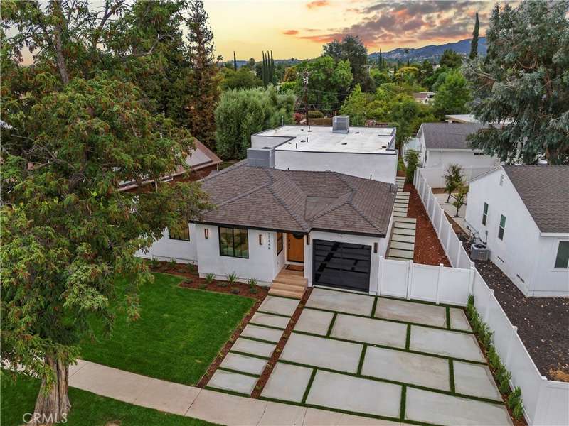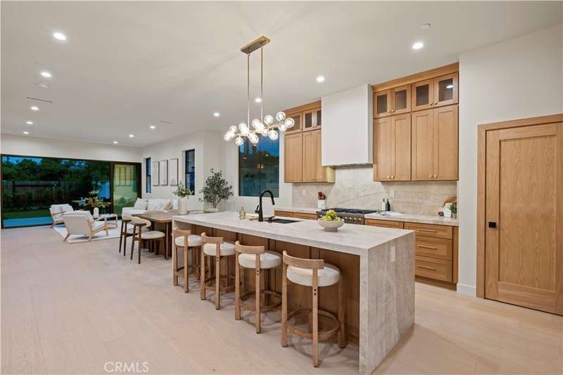 Welcome to this stunning custom-built home in Encino, perfectly situated on a generous lot! This organic modern 4-bedroom, 3.5-bath residence offers nearly 2,500 sq ft of beautifully designed living space with an open-concept indoor/outdoor layout—perfect for entertaining. From the moment you arrive, the wide frontage impresses with its expansive driveway and striking front entrance. Step inside and you’ll be greeted by a bright, airy floor plan that immediately sets the tone for sophisticated living. The formal living room at the front of the home is ideal for elegant gatherings, while the expansive great room offers the ultimate space for hosting luxurious indoor/outdoor events. The kitchen is a true showpiece, featuring floor-to-ceiling wood cabinetry, exquisite Taj Mahal quartzite countertops, and a full walk-in pantry. Adjacent to the kitchen, the sun-drenched dining area seamlessly connects to an oversized family room, where built-ins, custom shelving, and a cozy fireplace create the perfect evening retreat. Panoramic sliding doors open to a spacious deck and large backyard, creating effortless flow and extending your living space outdoors. The extra-large primary suite is a private sanctuary, complete with a walk-in closet and a luxurious spa-style bathroom featuring a double vanity and oversized shower. A secondary suite includes its own private bathroom, while two additional spacious bedrooms share a beautifully appointed bathroom at the front of the home. A separate laundry room and stylish powder room round out the interior amenities, offering total convenience and function. With thoughtful attention to detail and a well-planned layout, this home is designed to impress—featuring wood doors throughout, high ceilings, recessed and accent lighting inside and out, brand-new appliances, a finished garage, an oversized driveway, and lush landscaping. Plus, there’s plenty of space to add a sparkling pool - seller has a permit ready for you! This home truly has it all—style, space, and sophistication. ADT Alarm included with 1 year subscription. Welcome home!