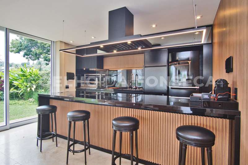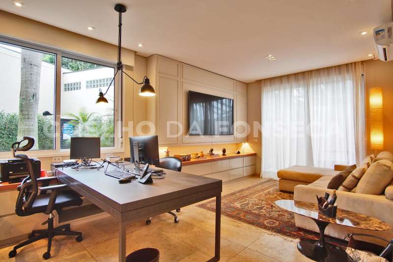 Linda casa cercada pelo verde! Totalmente reformada com elegância, possui projetos arquitetônico e paisagístico. Distribuída em três andares, possui elevador, área social com espaço gourmet, sauna e academia, integrados a um belo jardim com piscina. Além de quatro suítes no andar superior, há outra suíte e um escritório no térreo. Situada em rua tranquila, com acesso fácil a diversas regiões.