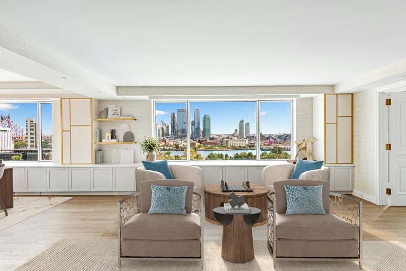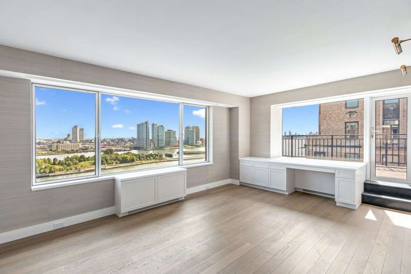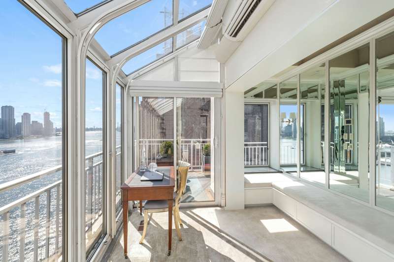 With 65 feet of unobstructed river front living and 1,175 square feet of private outdoor space high atop Sutton Place South, Penthouse S maximizes its direct river views at every opportunity. Freshly and completely renovated, this residence is the picture of refined living overlooking the East River. This penthouse duplex has three bedrooms, four bathrooms, one powder room, a formal library/den, two fireplaces - a wood/gas burning fireplace in the living room, and a wood burning fireplace in the primary bedroom, as well as a sunroom and three distinct terraces, each with breathtaking views.
