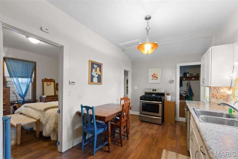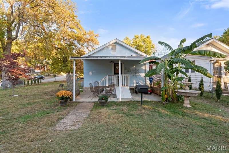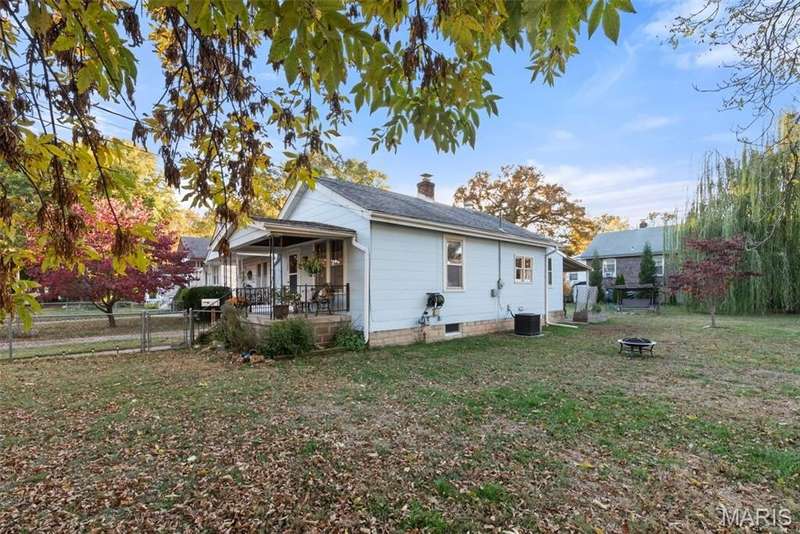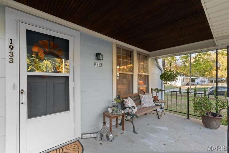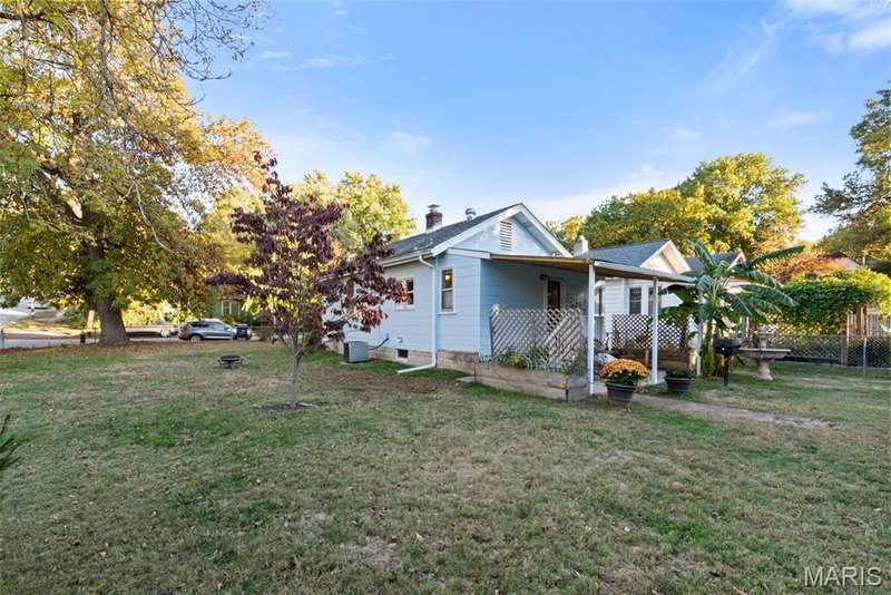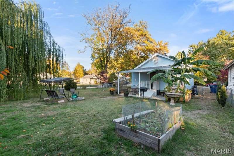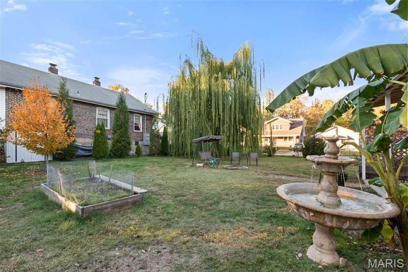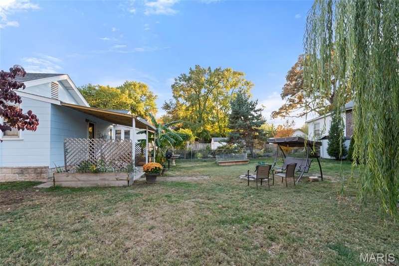 The sweetest 2-bedroom bungalow on a coveted corner double lot—approved for Maplewood/Richmond Heights Schools! From the charming covered front porch to the high-volume ceilings and original knotty pine floors, this home blends timeless character with thoughtful modern updates. The sun-filled, cheery eat-in kitchen was completely updated in 2019 and features crisp white cabinetry, stylish countertops, a pantry, and stainless steel appliances, including a gas range and dishwasher! The spacious primary bedroom offers two closets, while the second bedroom is perfect for guests, an office, or a nursery. A full bath with tub/shower completes the main level. The walkout lower level boasts an impressively deep pour with extra-high ceilings, providing abundant storage and fantastic potential for finishing. Step outside to your own gardener’s paradise—a fully fenced yard with garden beds, a covered patio, a magnificent weeping willow tree and off street parking. The double lot offers room to expand or could even be separated. Enjoy nearby restaurants, shops, Forest Park, and the vibrant Maplewood strip—all within minutes. Welcome home to a perfect mix of charm, comfort, and opportunity!