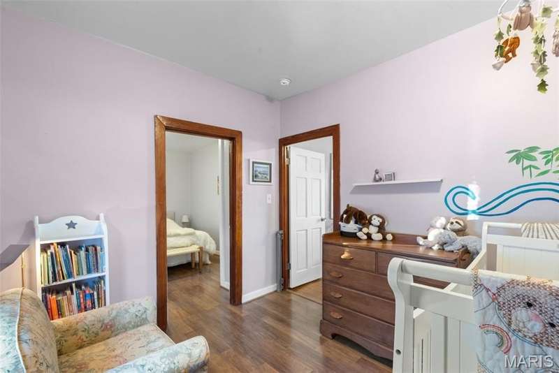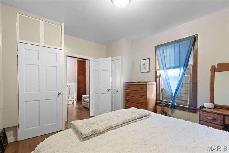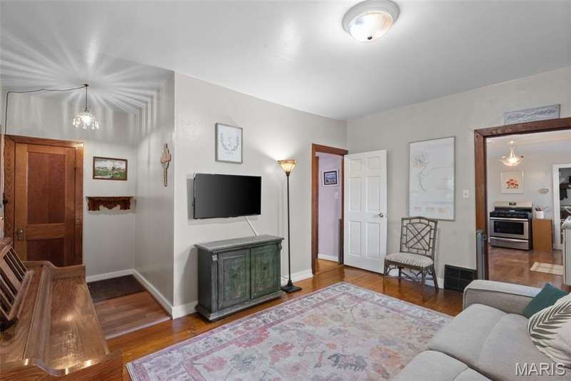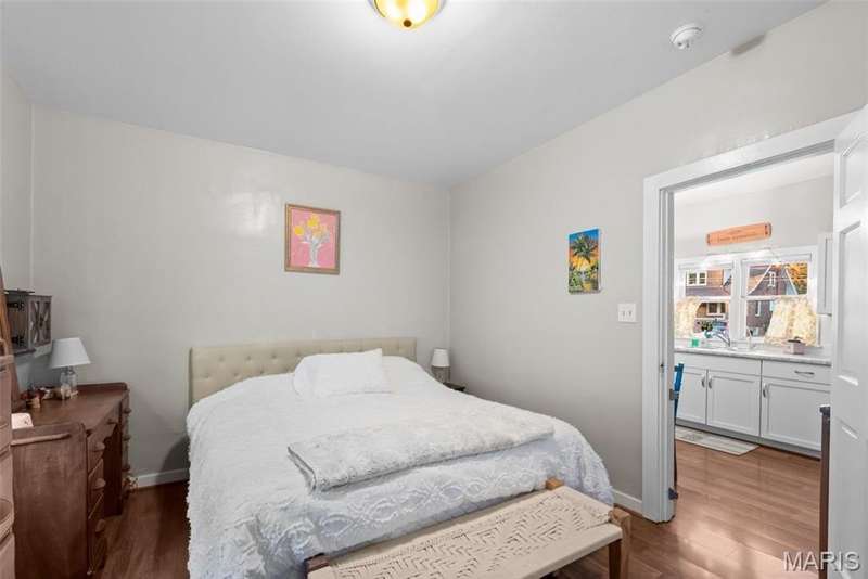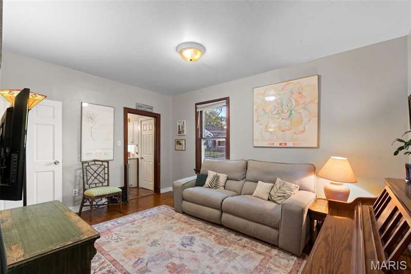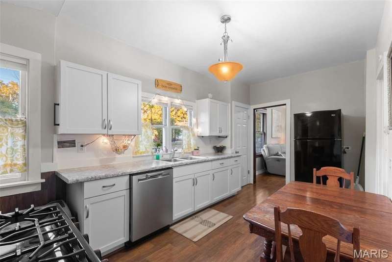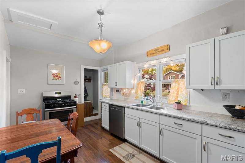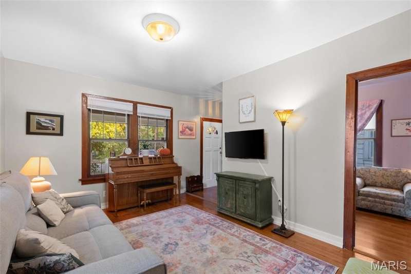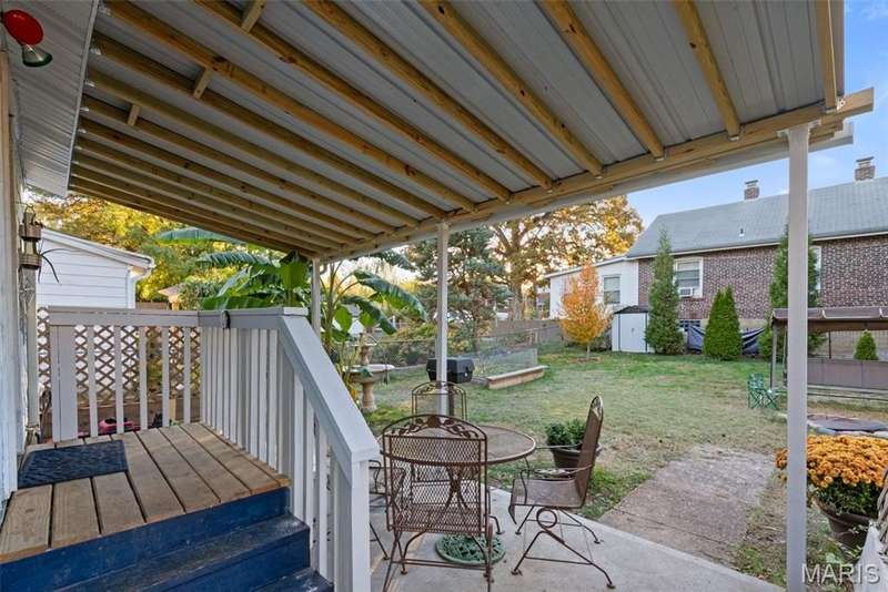 The sweetest 2-bedroom bungalow on a coveted corner double lot—approved for Maplewood/Richmond Heights Schools! From the charming covered front porch to the high-volume ceilings and original knotty pine floors, this home blends timeless character with thoughtful modern updates. The sun-filled, cheery eat-in kitchen was completely updated in 2019 and features crisp white cabinetry, stylish countertops, a pantry, and stainless steel appliances, including a gas range and dishwasher! The spacious primary bedroom offers two closets, while the second bedroom is perfect for guests, an office, or a nursery. A full bath with tub/shower completes the main level. The walkout lower level boasts an impressively deep pour with extra-high ceilings, providing abundant storage and fantastic potential for finishing. Step outside to your own gardener’s paradise—a fully fenced yard with garden beds, a covered patio, a magnificent weeping willow tree and off street parking. The double lot offers room to expand or could even be separated. Enjoy nearby restaurants, shops, Forest Park, and the vibrant Maplewood strip—all within minutes. Welcome home to a perfect mix of charm, comfort, and opportunity!