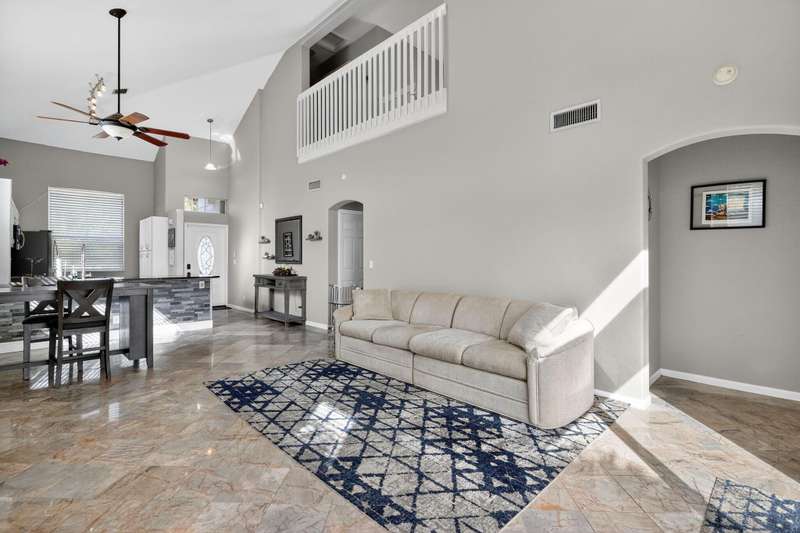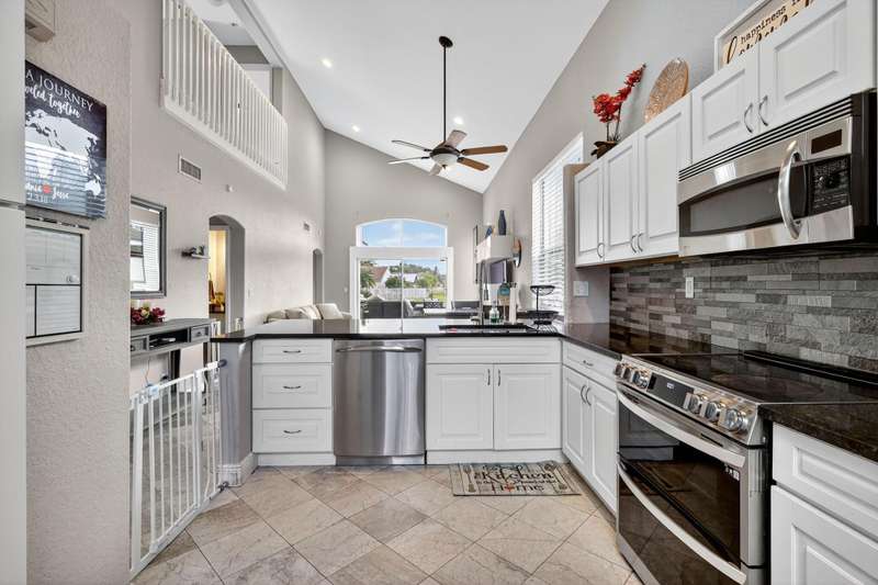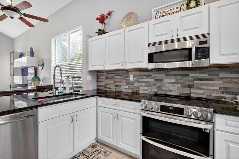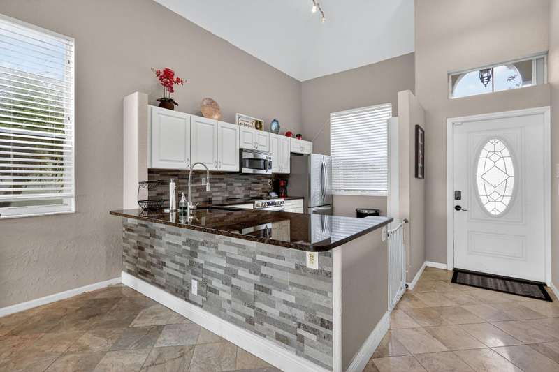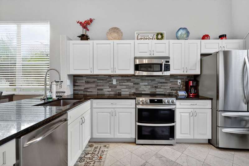 Lakefront Living in Winston Trails! This beautifully updated 3-bed, 2.5-bath single-family home offers 1,622 sq ft & open-concept living with soaring ceilings & stunning lake views. The 1st floor features elegant marble flooring throughout, a light & bright living space, & a spacious master suite with walk in closet, updated bathroom for ultimate convenience. The updated kitchen boasts granite countertops, soft-close white cabinetry that seamlessly matches the upgraded bathrooms and stainless steel appliances. Upstairs, you'll find new carpeting & two spacious, well appointed bedrooms at separate ends of the home, and bathroom. Step outside to your private patio/oasis and enjoy tranquil waterfront views--ideal for relaxing or entertaining. Room for pool.