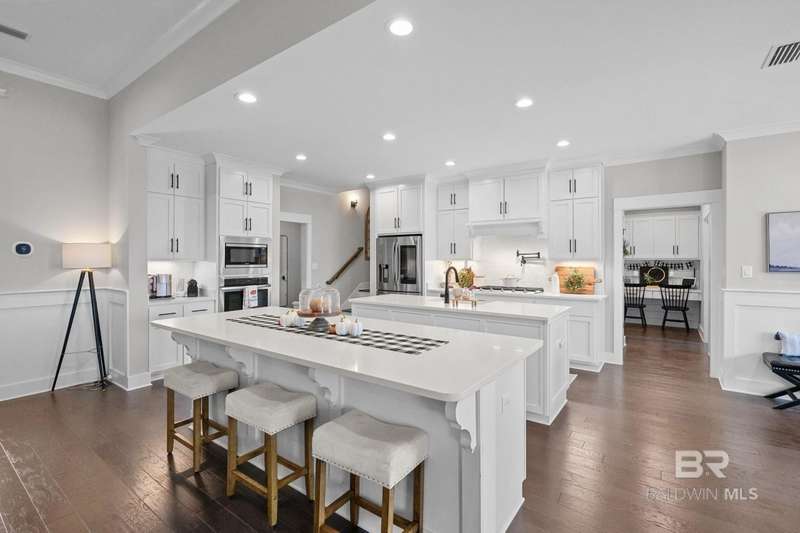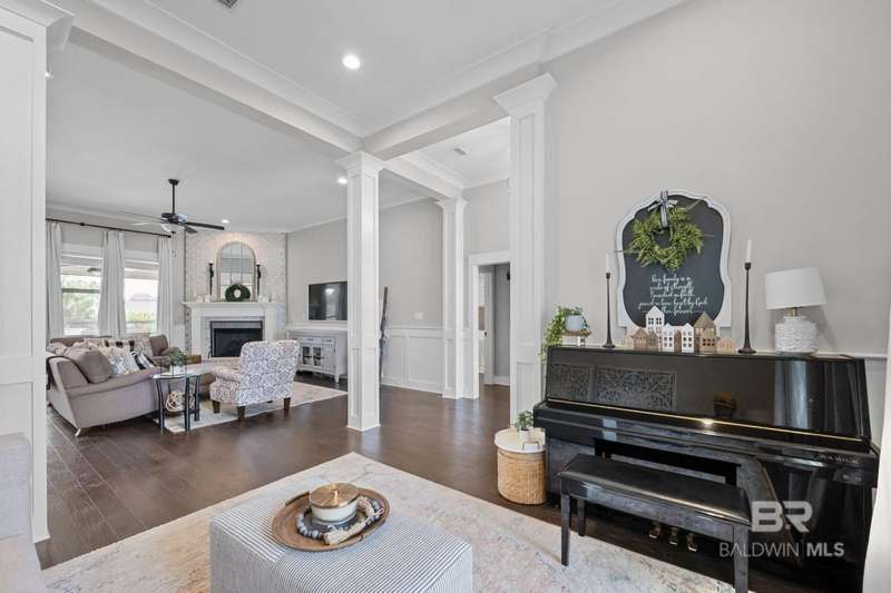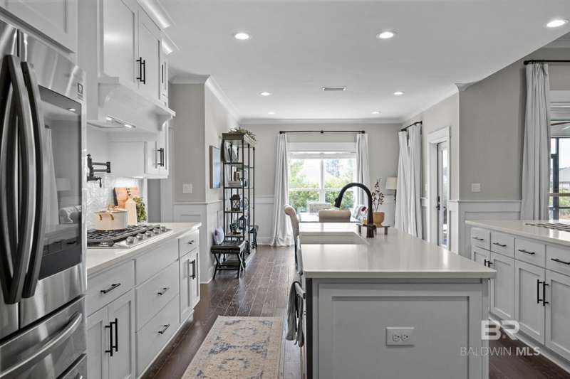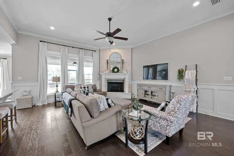 IMMACULATE gold fortified Chelsea plan built by Truland Homes in the highly desirable Firethorne subdivision. This sought after floor plan will please the fussiest of guests or family members. Hardwood flooring & crown molding throughout the home. Great room has a brick gas fireplace and wainscotting. Oversized owners suite has hardwood flooring, tray ceiling and ample lighting. Owners bathroom has two separate vanities with a wood framed mirror, two walk-in closets with wood shelving, tiled shower with a glass frame and a separate soaking tub for those needing R & R. Open kitchen with a two work islands, white painted cabinets to the ceiling, stainless steel Samsung appliances including a 5 burner gas cooktop with custom hood vent & built in wall oven, pot filler, quartz countertops, subway tile backsplash, and a walk-in pantry with wood shelving. Painted mud bench upon garage entry is a great spot for backpacks/leashes or storage. Laundry room includes a sink ideal for bathing pets or those messy projects, tons of storage and upgraded pull out drawers for organization. Three guest bedrooms on the main floor with hardwood flooring and walk-in closets. Guest bathrooms have quartz countertops, framed wood mirrors, shower/tub combo with tile surround. Located upstairs is an additional bedroom and a private bath. Check out the walk-in attic where you will find massive storage! The patio features a screen enclosure, v-groove wood ceiling with a spectacular view of a resort style backyard that host a gunite pool with heater and chiller, water feature, travertine tile, and a view of the community pond. Custom landscaping, exquisite sunsets, gutters, tankless water heater, irrigation system, 3 car garage, termite bond, and a smart home package complete this gem of a property. Community features a pool, tennis/basketball court, wiffle ball, grilling pavilion, playground, and blueberry bushes. Call today for a tour! Buyer to verify all information during due diligence.