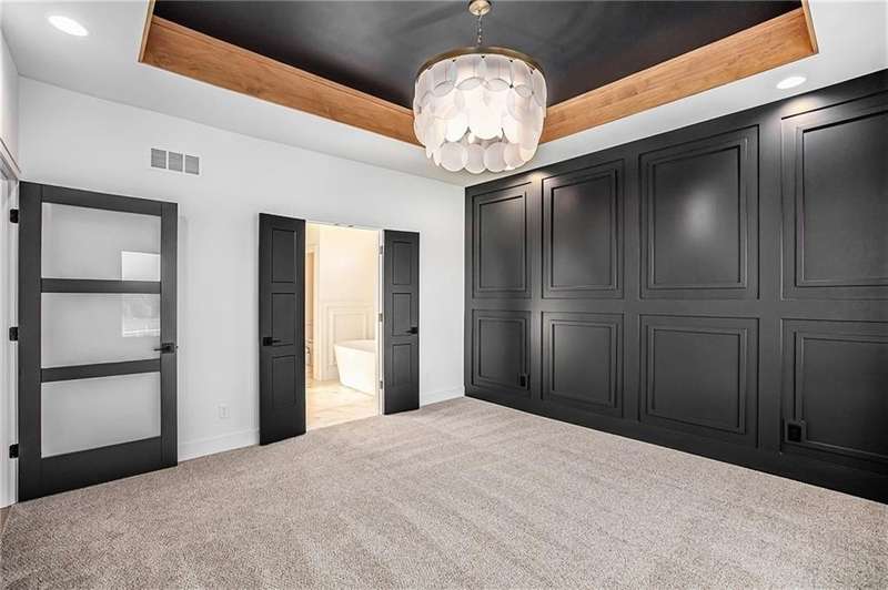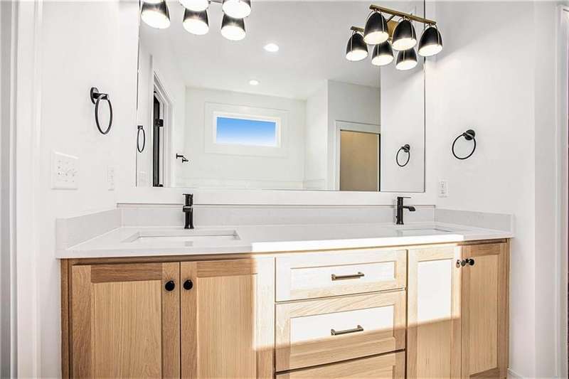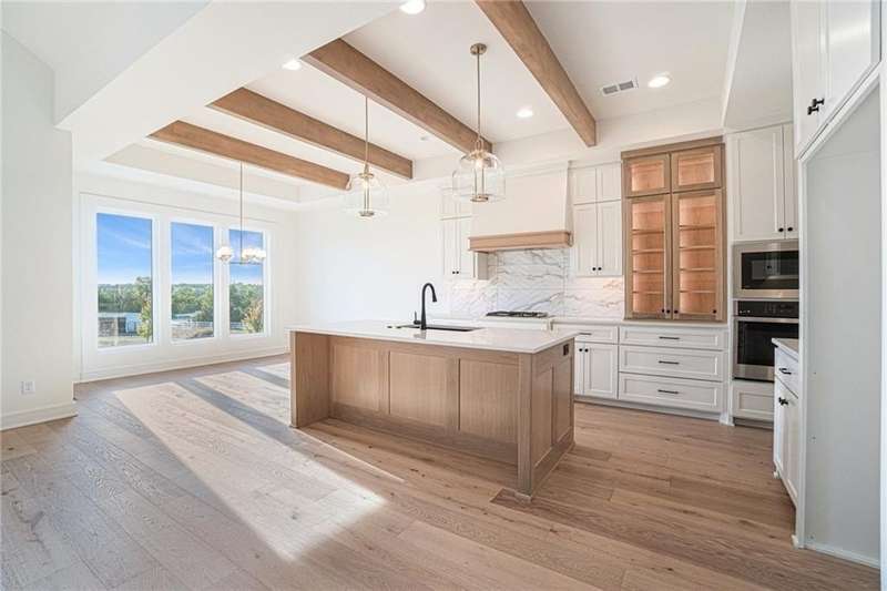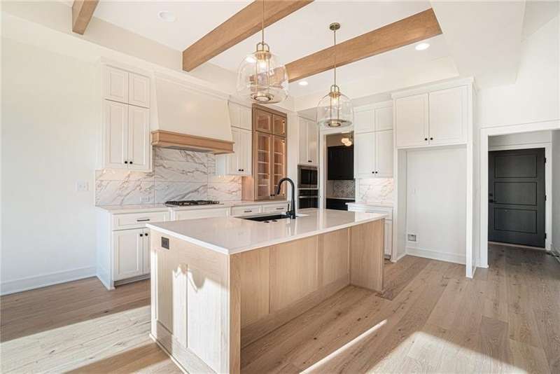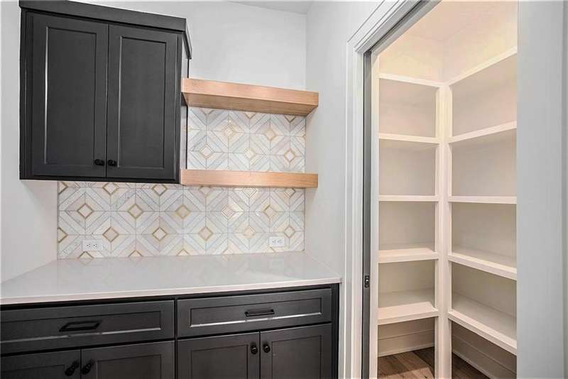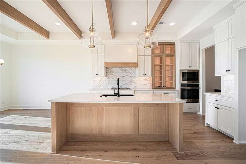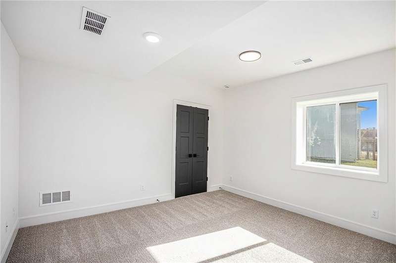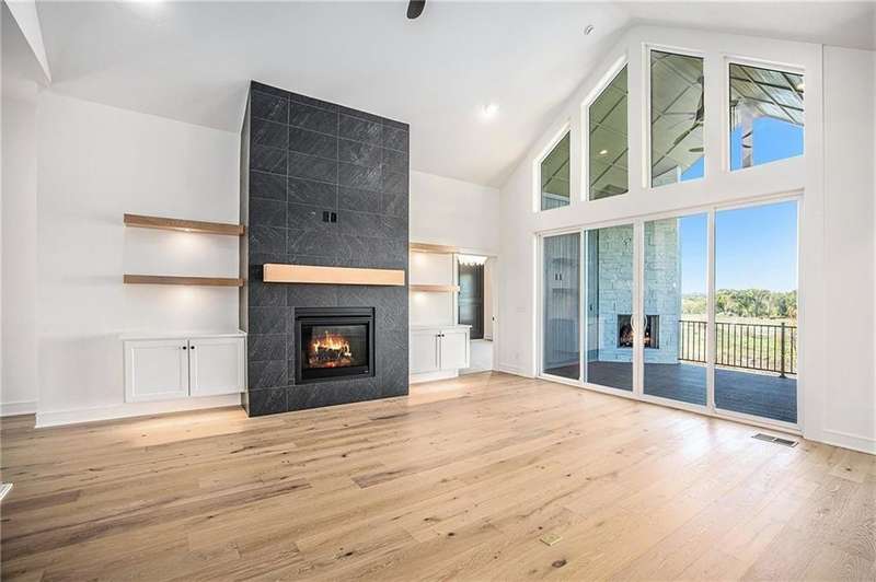 MOVE IN READY -"The Bayberry I" by JFE Construction, situated on Lot 90, is a Reverse 1 ½ Story residence featuring four bedrooms and three bathrooms. Upon entry through the impressive 8-foot double doors, residents are greeted by a spacious great room showcasing a vaulted ceiling, floor-to-ceiling fireplace, and expansive windows that create an open atmosphere. Large sliding doors seamlessly connect the great room to a covered deck equipped with a stone fireplace, offering an ideal space for entertaining. The kitchen is thoughtfully designed with a substantial island finished in quartz, stainless steel appliances, and a generous pantry that includes a built-in coffee bar. The primary ensuite features a free-standing soaker tub, double vanity, zero-entry shower, and a walk-in closet. A secondary bedroom or office is located on the main level. The finished lower level provides a family room, wet bar with island, two additional bedrooms, and a full bathroom. Enjoy access to the covered deck from the walkout lower level. Minutes from Blue Valley K-12 schools. Taxes are estimated. Models Open Daily, 11 am – 5pm, and Sunday, 12-5pm. Visit the sales office at 12411 W 183rd Terrace, Overland Park. THIS HOME IS MOVE IN READY.