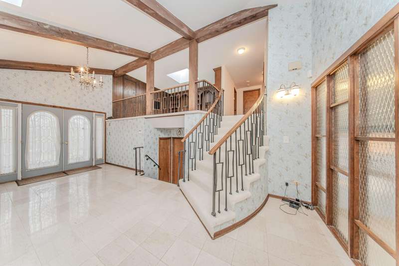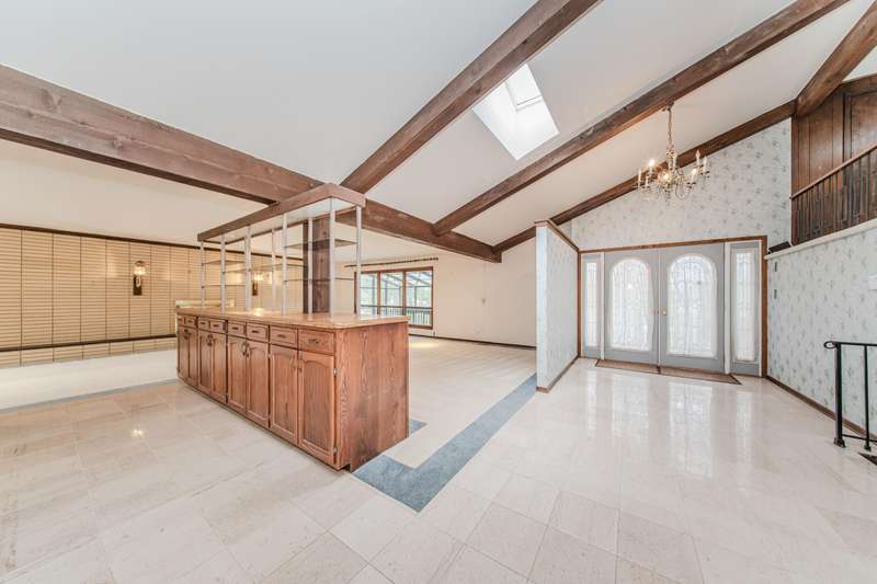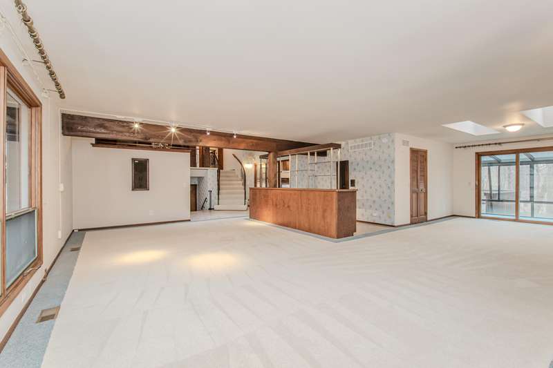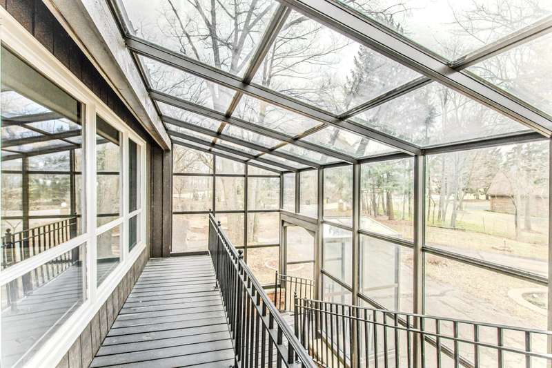 Custom built 4BR, 3.5BA home with a sprawling estate design has access to ''ALL SPORTS'', Walnut Lake. Situated on over 2 acres with panoramic views of woods from every room in this over 4600 square foot home, including the walk-out lower level, door walls galore, 2-Story foyer with marble custom interior features, skylights, wood beams, stained glass, built-ins, including bookcases and cabinets in the separate study. Pretty brick wall with gas fireplace and hearth including lighted wall sconces separate the formal living and dining. Kitchen with breakfast nook exits to the inviting 3 seasons sunroom that overlooks winding ravine amongst the enchanted forest like feeling of the property. Massive En-suite with built-ins, plus closet systems in the large walk-in closet, full bathroom with dual sinks, granite counters, separate toilet room, garden tub and flex space for numerous uses. Separate laundry room with washer, dryer and laundry tub. The many door walls that exit to private decks and brick paver patios. 3 Car attached garage with circular driveway and brick paver walkways. Surrounded by multi-million dollar homes.