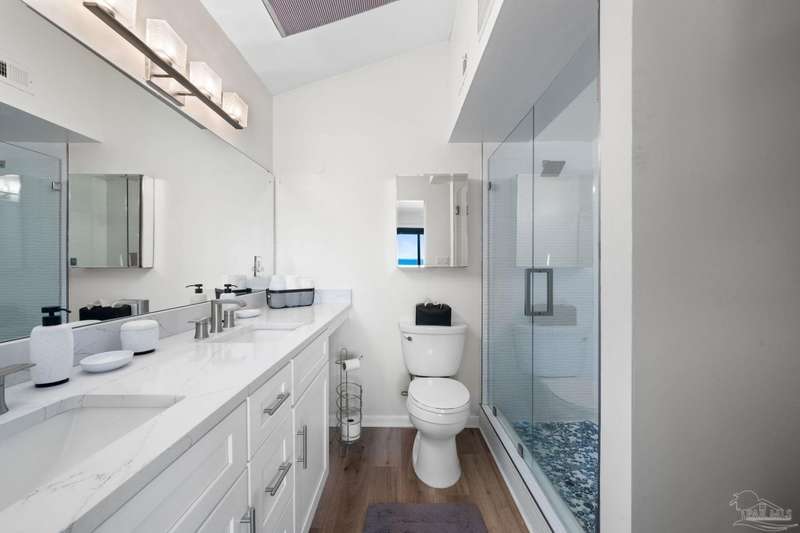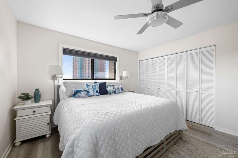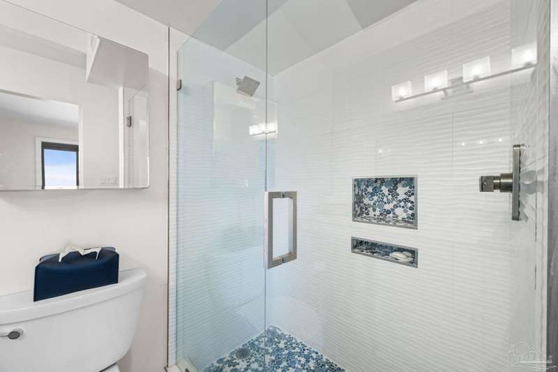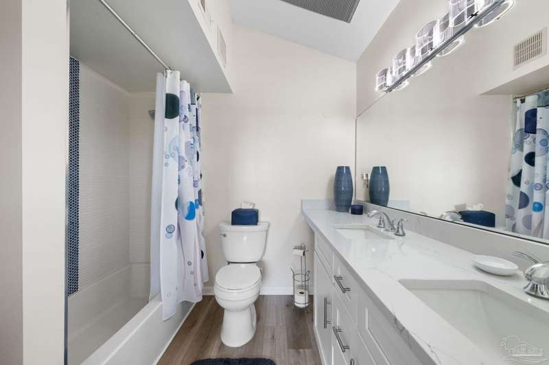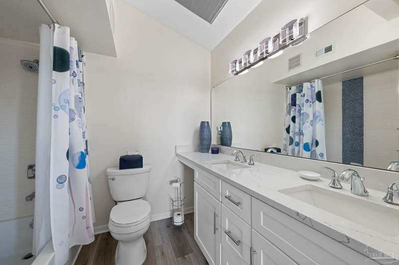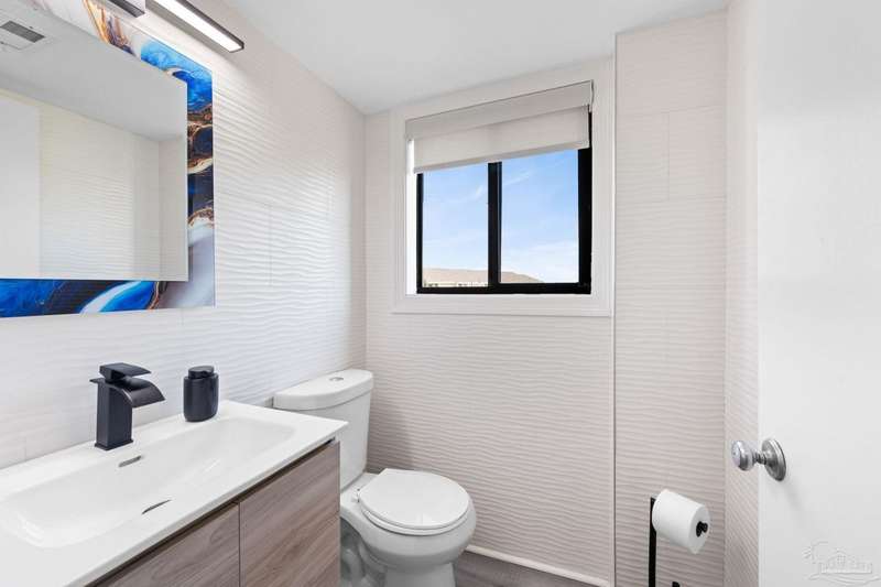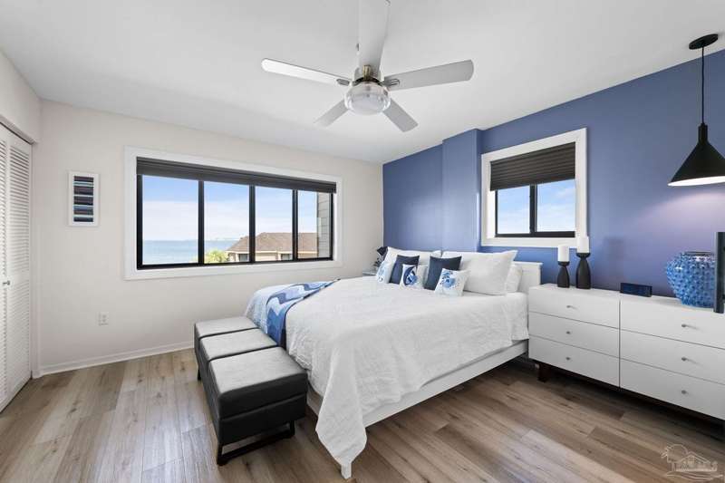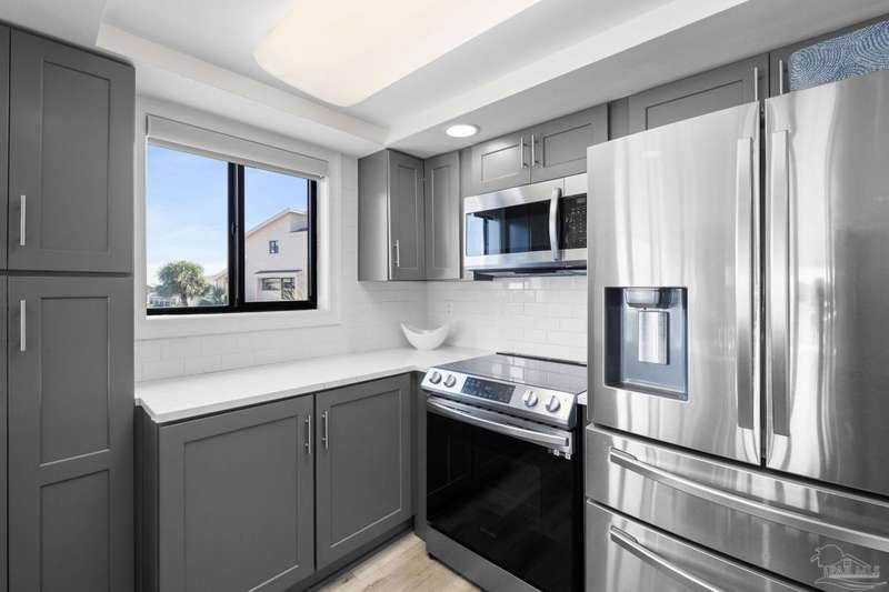 Welcome to your beachside escape at Santa Rosa Dunes on Pensacola Beach, where this fully remodeled 2-bedroom, 2-bathroom waterfront condo offers an unparalleled blend of luxury, comfort, and coastal charm. Perfectly positioned along the serene Santa Rosa Sound, this property captures breathtaking water views and vibrant sunsets, creating an idyllic setting for a primary residence, vacation getaway, or lucrative investment opportunity. Step inside to discover an updated interior featuring durable luxury vinyl plank (LVP) flooring, am expanded kitchen equipped with sleek stainless steel appliances, quartz countertops, and custom cabinetry, complemented by modern lighting fixtures that enhance the contemporary ambiance. The open-concept living area seamlessly connects to a private balcony, perfect for savoring morning coffee or evening cocktails while soaking in the Sound views. Residents of this exclusive community enjoy access to an array of resort-style amenities, including the largest pool on Pensacola Beach, ideal for refreshing swims or lounging under the sun, a fitness center, and well-maintained tennis courts for active lifestyles. For water enthusiasts, the property offers a community dock with mooring balls, making it a haven for boating enthusiasts eager to explore the Gulf Coast waters. With direct beach access just steps from your door, this move-in-ready condo promises a lifestyle of relaxation and recreation, blending coastal elegance with unmatched community features. Whether you're seeking a permanent seaside retreat or a high-demand rental property, this Santa Rosa Dunes condo delivers the ultimate Gulf Coast experience.