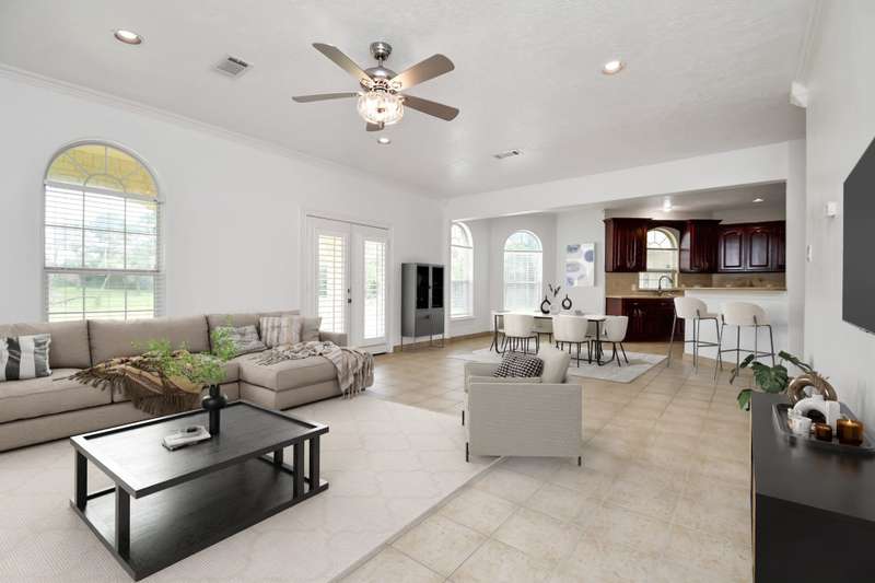 Set on nearly 8 acres in Baytown, Texas, this custom-built home offers an ideal blend of space, comfort, and privacy. The thoughtfully designed floor plan features a spacious primary suite downstairs and three additional bedrooms upstairs — each with its own ensuite bath and walk-in closet. The chef’s kitchen is a true centerpiece, boasting stainless steel appliances, granite countertops, and a 6-burner gas cooktop. Soaring windows flood the living spaces with natural light and showcase breathtaking views of the lush, expansive backyard. Outdoors, enjoy a 3-car garage, a generous patio area, and endless opportunities for recreation, relaxation, or future additions. Whether you're an outdoor enthusiast or simply seeking your own private retreat, this property delivers. Don't miss out — schedule your private tour today!