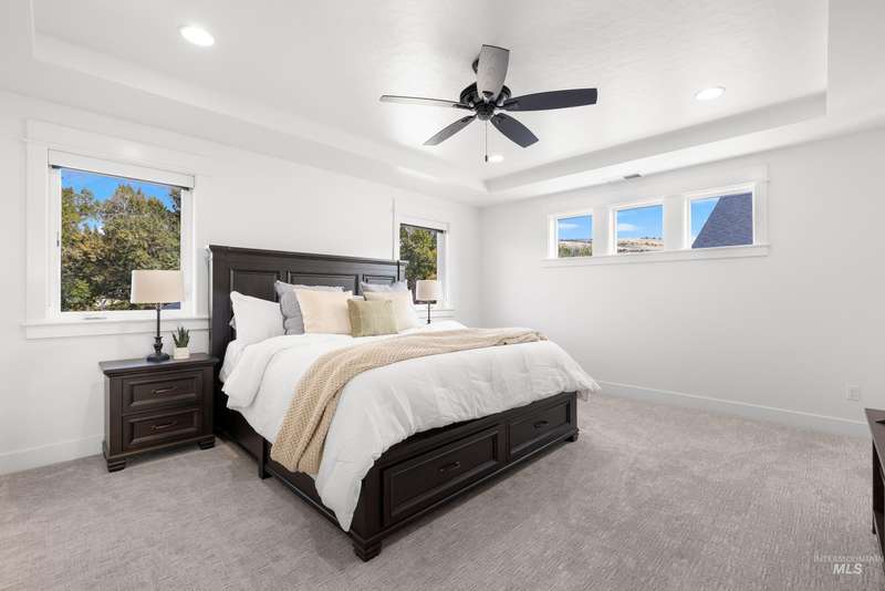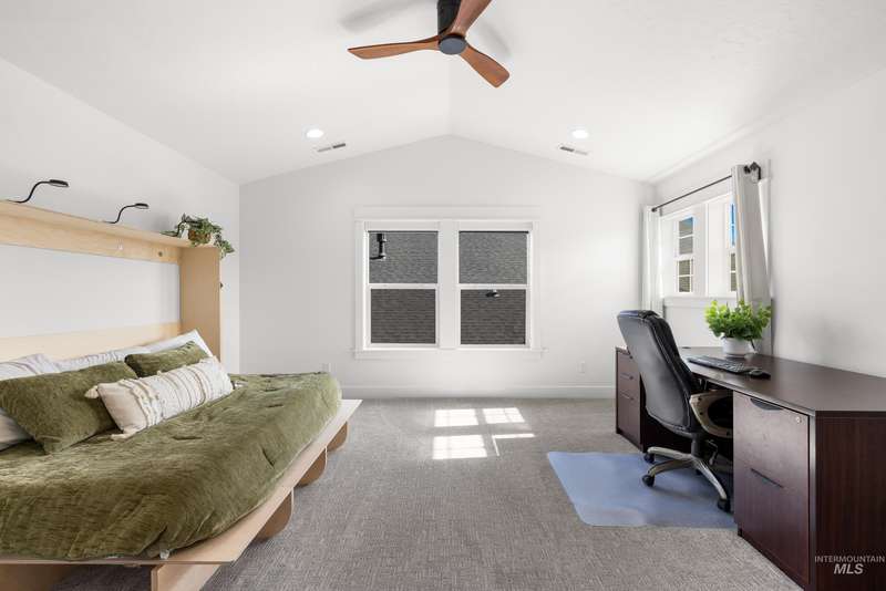 Set against Cartwright Ranch's serene, protected Open Space Preserve, and beautiful Dry Creek. Enjoy mountain sunrises from bedroom windows, and private wildlife watching from your back patio, while being blocks from parks, the community pool, gym and pickle ball courts. This sunlit two-story offers 5 bedrooms, 4.5 baths, a bonus room, additional flex space/office off the kitchen, and a generous 3-car garage. The main level features a guest bedroom with ensuite, a spacious great room and fireplace, with views of Dry Creek and it's mature tree's. The well appointed kitchen's large island, bar seating, Bosch appliances, quartz countertops and custom cabinetry flows seamlessly into a sun-filled informal dining area. Tucked off the kitchen you'll find the mudroom to the garage, a large double walled walk-in pantry and a dedicated hobby/craft/office space complete with a sink to keep projects tidy. Stairs lead to a vaulted bonus room. Every bedroom has a walk-in closet, two are joined by a Jack-and-Jill bath, and abundant storage throughout. The large side yard is perfect for a shed or spa, and the generous backyard and patio provide ample room to breathe, play and make memories. The gated back fence leads directly to Ridge to River's 800+ miles of foothill trails. Ask me about the new grocery (coming soon) at Hwy 55 and Dry Creek Road!