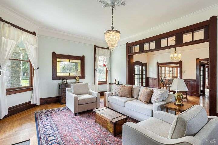 Experience Oakmead, an exquisitely preserved estate in Russian River Valley. Built in 1888, this historic Sonoma County property overlooks 17.5 acres with 9.68 acres of picturesque Pinot Noir & Chardonnay vineyards contracted with esteemed wineries. Lovingly maintained for over 40 years by the same family, Oakmead seamlessly blends its original Victorian charm with modern amenities. Explore winding pathways through rose gardens, ponds, fountains, & manicured lawns, leading to a restored 5,000 sqft barn, art/exercise studio w/ half bath & an independent 2bed/1bath cottage. Additional features include wine cellar, multiple outbuildings & a detached two-car garage. The main residence, nestled amidst lush gardens, offers an outdoor kitchen, fire-pit & expansive patio for entertaining. The first floor showcases an elegant primary suite with walk in closet & grand bathroom, custom kitchen with large pantry & breakfast nook open to a cozy family room with one of five fireplaces. Rounding out the main floor is the sunroom, library, formal dining & living room with adjacent music room & a versatile office suite with full bath. Upstairs includes four bedrooms, a full bath & expansive views. Immerse yourself in the rich history & luxurious amenities of Oakmead, a rare wine country gem.