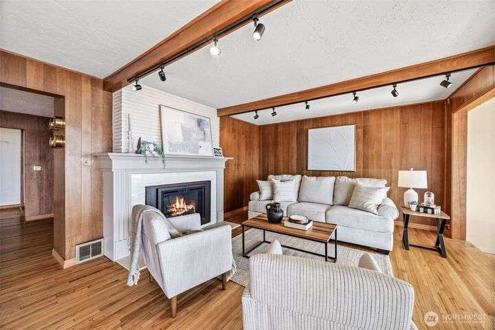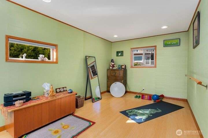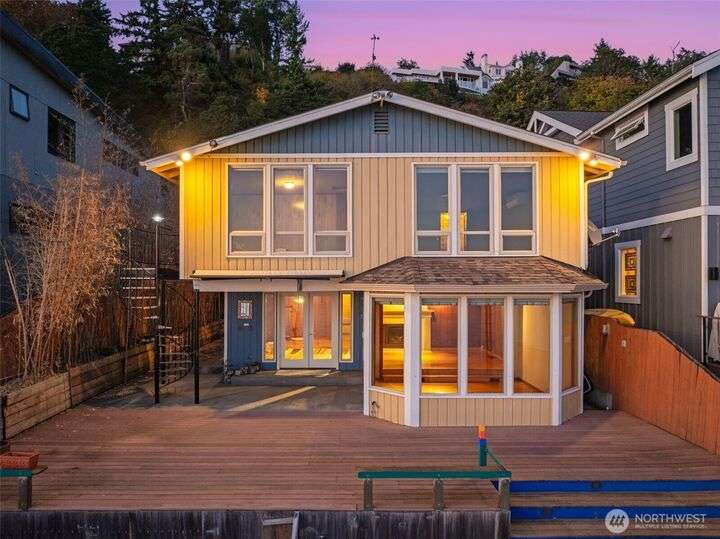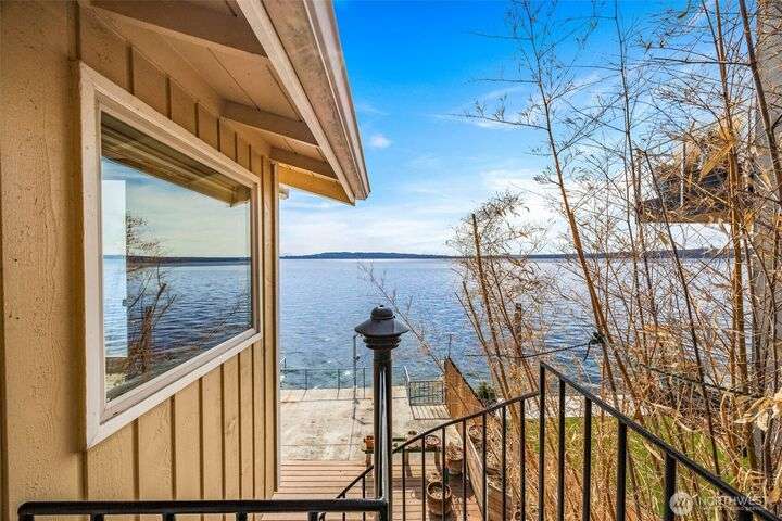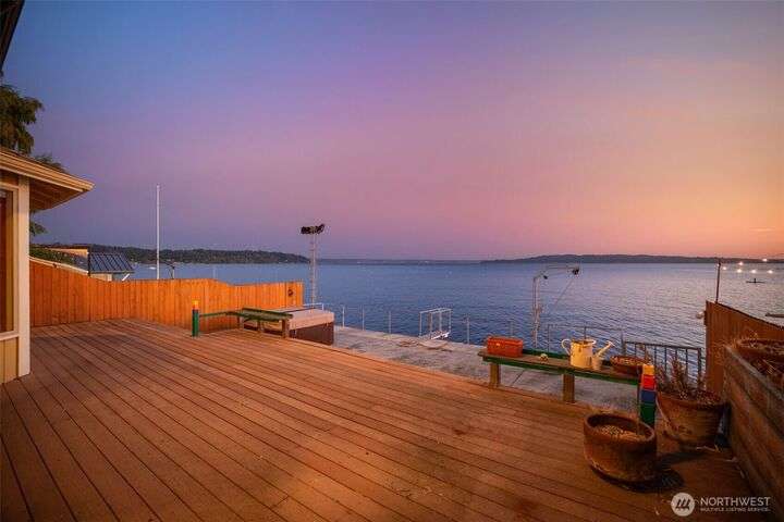 Welcome to this waterfront retreat in Three Tree Point! It's like living on a houseboat, only better. 40' of bulkhead beachfront with stunning views out to Puget Sound, top of Mt. Rainier and the Olympic Mountains! Entertain on the massive patio and deck combination with steps down to your own beach. Wide open entry with French doors bringing the outside in. Inviting formal living room with gas fireplace and adjacent sunroom, offer separate living areas with plenty of windows to take in the views. Drive-up 3-car garage with finished rooms above for home office, shop, exercise studio and more! Would make and ideal ADU/guest apartment (currently not plumbed for water/sewer). Enjoy year-round comfort with central A/C and gen. ready.