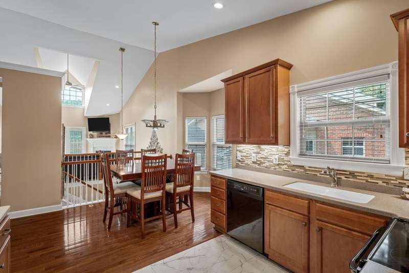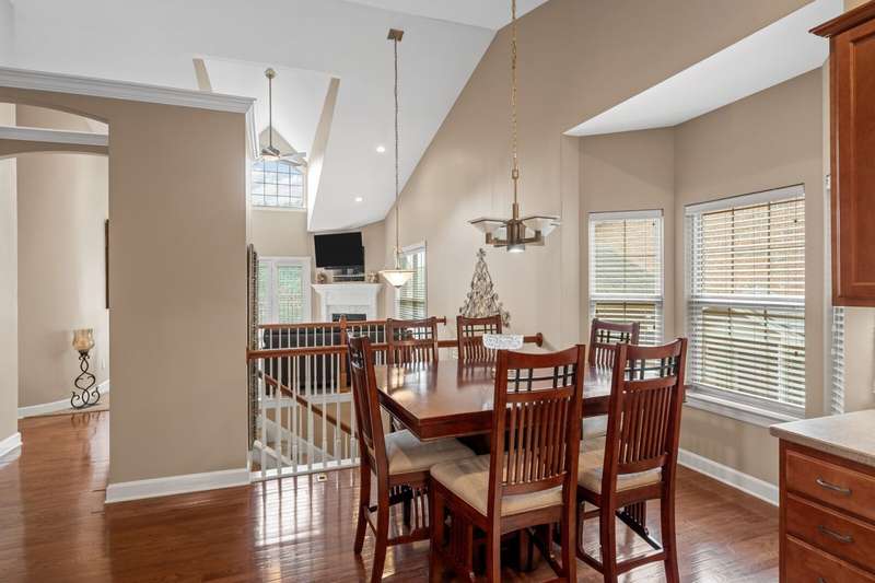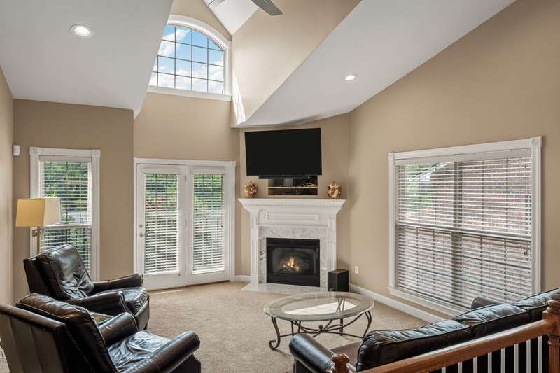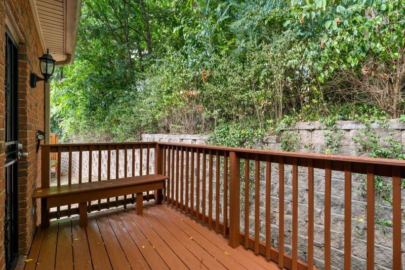 Upgrade your life with this stunning end-unit brick townhouse with a modern open floor plan, unique architectural details, soaring ceilings, arched windows, outdoor space, abundant natural light, and lots of storage. With an extremely convenient location in Donelson, TN, with easy access to Nashville International Airport, downtown Nashville, nearby lakes, and outstanding local restaurants, parks, and Greenway access. This floor plan includes a split entry with hardwood floors. Upstairs is main level living with an open floor plan with easy flow between the living room, dining room, and kitchen. The separate formal living room includes a cozy gas fireplace. French doors from the living room and a screened, sliding glass door in the primary bedroom open to a large, aggregate veranda that overlooks Ravenwood Park and beautiful sunset views of Lincoya Hills. The primary includes cathedral ceilings, a large private ensuite with a deep soaking tub, a separate shower, and a walk-in closet. Downstairs is the flex space you have dreamed of, and it includes a massive bonus space with a wetbar, closet, and full bathroom. The homeowner has upgraded the property to include a separate finished space off the garage that could be used as a private home office/home gym/hobby room, etc. For added convenience, the home includes a two-car garage. A few steps away from the front door is a nature trail leading to the Stones River at the bottom of the hill. Near the front of the neighborhood is a community pool! New carpet installed 2025. Brand New HVAC