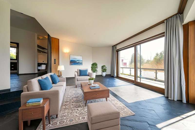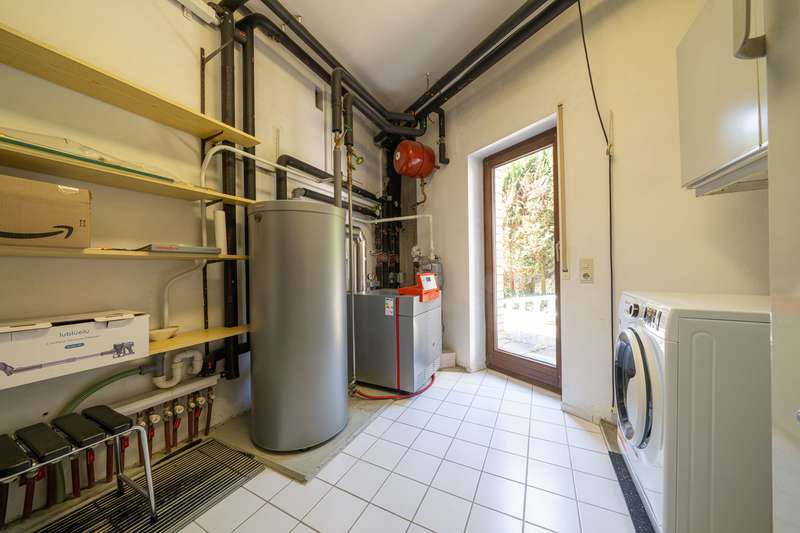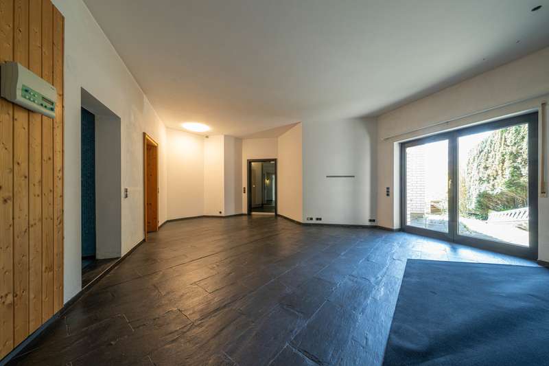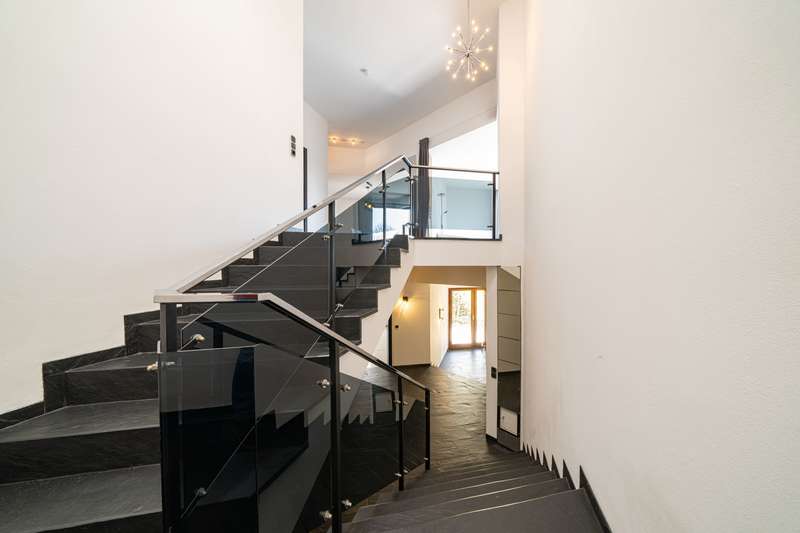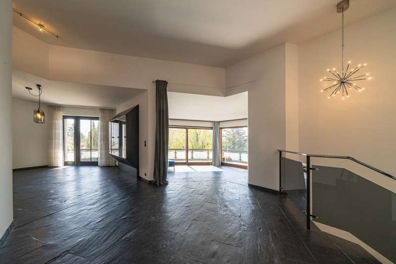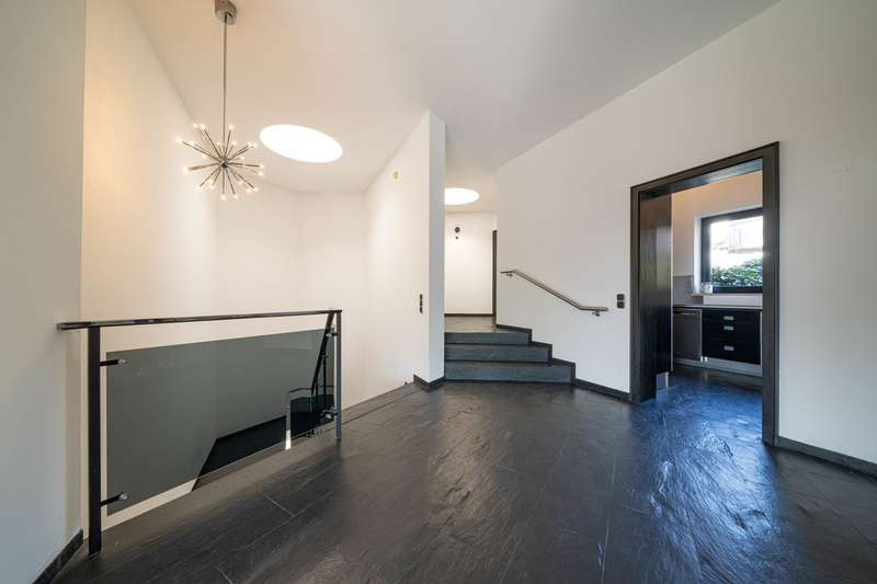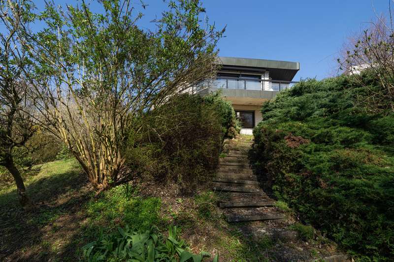An architecturally exceptional villa awaits you in a sought-after green urban location, which immediately catches the eye with its hexagonal solid construction and generous interior design. With approx. 255.36 m² of living space on two floors, this property offers an incomparable sense of space and stylish living for discerning buyers. The property impresses with its high-quality interior fittings, including fine slate floors, a marble bathroom and a bespoke fitted kitchen, which is already included in the purchase price. A cozy soapstone stove with electric control (2023) rounds off the harmonious living ambience. Underfloor heating throughout the house ensures pleasant warmth and a comfortable indoor climate. A special highlight is the spacious wellness area, which leaves nothing to be desired with a sauna, wellness shower and a pre-installed pool in the hobby room. For future-oriented living, empty conduits for a photovoltaic system have already been installed from the roof to the basement - an ideal prerequisite for energy self-sufficiency. Enjoy the wonderful view from the terrace and balcony, both of which have an ideal south-facing orientation and captivate with their expanse and view. The garden rounds off the exclusive offer and provides ample space for personal design. The property is in a well-kept condition and is ready for immediate occupancy. Minor modernizations were last carried out in 2024. The wallbox for e-mobility in the spacious double garage underlines the contemporary comfort. Despite the high-quality furnishings and loving care, there is still potential for investment in the outdoor facilities and in terms of energy efficiency: the building fabric largely dates back to 1981. This opens up individual design options for the new owner to bring the property up to date in terms of energy efficiency and to further refine it at the same time. The location is one of the most sought-after residential areas in the city - surrounded by greenery and with excellent connections to all essential facilities for daily life. Shopping facilities, schools, doctors and local recreation are in the immediate vicinity. This special property combines architectural individuality, stylish furnishings and space for personal development - a rare opportunity for anyone looking for something out of the ordinary.