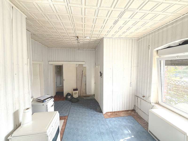 A semi-detached house with a charming flair dating back to 1910 is for sale. This property is situated on a generous plot of approx. 1883 m² and offers a living space of approx. 99 m². With two rooms and a bathroom, the house offers a compact room layout that is ideal for couples or small households. The house shows clear signs of age and is in a condition that requires extensive refurbishment. This offers potential buyers the opportunity to realize their individual ideas and renovation plans. The property therefore offers plenty of potential for creative house builders and those looking to tackle a project. The semi-detached house has night storage heating, which provides a basic supply of heat. Here, too, there is the option of upgrading with a modern heating system and adapting the house's energy concept to current standards. The generously proportioned plot of land offers a wide range of design options for the future. Whether a lovingly landscaped garden, a vegetable garden or a play area - the spacious outdoor area offers many options for realizing dreams of living close to nature. The layout of the house is functional. On the first floor there is a spacious living room, a dining room and the kitchen with a separate pantry. There is a further room on the upper floor, which could be used as a bedroom. The bathroom is also located on the lower floor. The location of the semi-detached house combines rural living with proximity to urban amenities. All the important facilities for daily needs as well as public transport connections can be found in the surrounding area, ensuring access to the infrastructure of the surrounding area. Due to the year of construction and the associated charm, this property could offer a warm and inviting home after renovation. Interested parties with a flair for historical architecture and a willingness to undertake renovation work will find the opportunity to realize an individual residential project here. Be inspired by the possibilities and arrange a viewing appointment to get to know the conditions on site. This semi-detached house has plenty of potential for creative minds and skilled buyers and could soon become your new home, which you can design entirely according to your wishes.