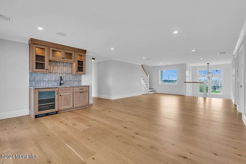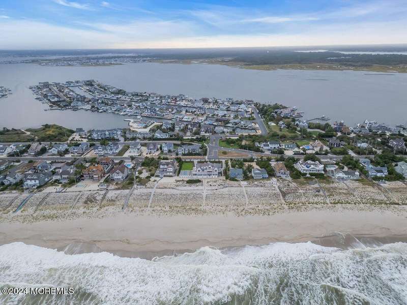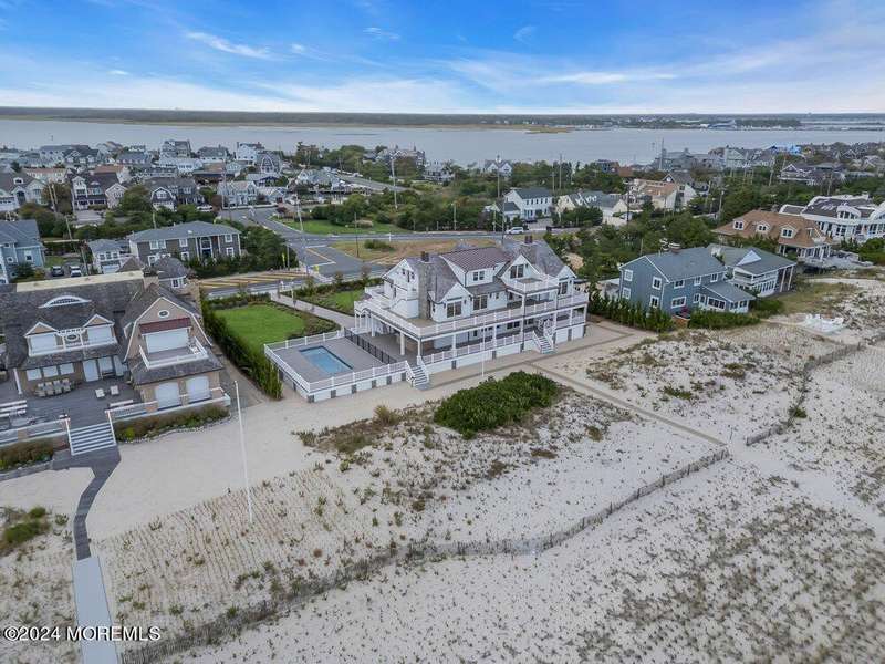 Experience unparalleled luxury in this oceanfront estate featuring 175 feet of pristine private beach and more than 13,000 sq feet of combined indoor/outdoor living space. This one-of-a-kind refined home boasts 9 bedrooms, 10 bathrooms, dual laundry rooms, a 5-stop elevator and an open floor plan that seamlessly blends family comfort with sophisticated entertaining. Every detail of this bespoke residence exudes elegance from the grand open kitchen offering a spacious walk-in entertainment pantry and secondary kitchen. Custom millwork and inset cabinetry enrich the interior, while soaring ceilings and expansive private balconies off each bedroom provide a luxurious sense of space and seclusion. The sun-drenched exterior includes multiple decks, an elevated outdoor kitchen, bar, custom gunite pool with sundeck, lounge, an outdoor bathroom and shower. The seamless integration of indoor and outdoor living is showcased with wraparound decks on each level and an additional balcony on the third floor. Enjoy breathtaking panoramic views of the ocean's sunrise and the bay's sunset from the expansive covered porches and decks, embodying the ultimate in resort-style living.