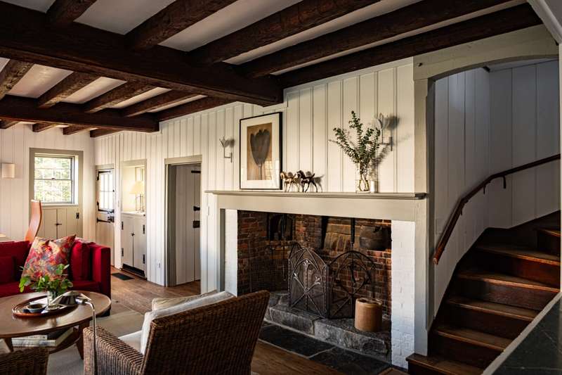 Reverie Farm is an exceptionally rare late 18th century stone and shingle estate, on more than one hundred acres, located in one of the highest and most private parts of Connecticut. Situated in the heart of Litchfield County, the property rises more than 1,200 feet in elevation across four distinct tax parcels, among which are several estate quality building sites. The setting is dreamlike in every season, and quintessentially New England. The 1799 Main house is an architectural marvel that achieves effortless balance between its Georgian-Federal, Dutch Colonial, and European elements. The effect is nothing short of entering a fairy tale, one that unfolds endlessly with each new detail that one discovers. An incredibly intimate home, the Main house at Reverie is nonetheless nearly 7,000 square feet and boasts seven bedrooms, five full and two half baths, several ancient fireplaces, and an historic pub, reputed to be the oldest part of the house. There is a Gunite pool, privately situated among mature gardens, a tennis court, and a beguiling number of ancient trees around the property. Reverie has an overwhelming number of outbuildings including a guest house, separate dance studio with apartment, and an antique barn that was the studio of American Abstract Expressionist painter Cleve Gray. Gray lived at the property with his wife Francine du Plessix, the noted journalist-novelist.