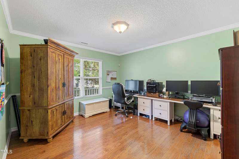Quality Abounds!!! Lovely 2 Story 4 Bedroom/2.5 Bath Home with Bonus. First Floor Features Office, Dining Room and Open Eat-in-Kitchen with Island, Granite Counter Tops, Tile Backsplash and Family Room that Opens Out to a Fenced in Back-Yard. 2nd Floor Offers Open Bonus Room , 4 Bedrooms and Separate Laundry Room. 14.9 x17.8 Owners Suite Adjoins the Owners Bath with Double Vanities, Garden Tub, Separate Walk-in-Shower and Walk-in-Closet. Conveniently Located to Raleigh, Cary and Durham, with Easy Access to 540 and 440.