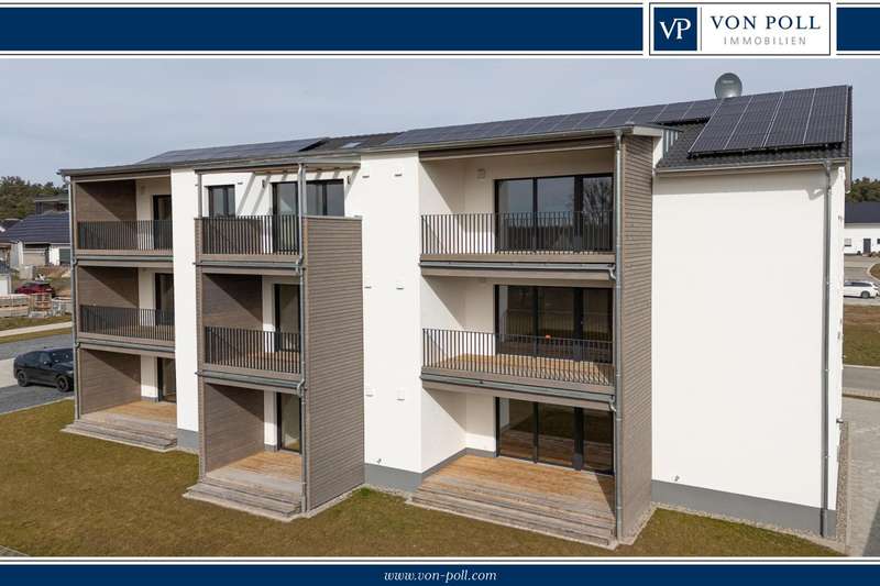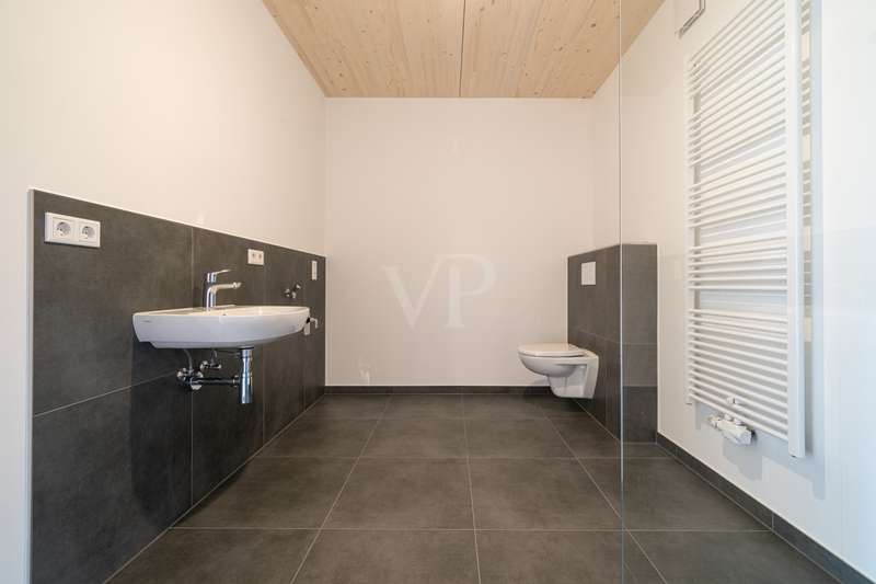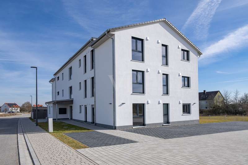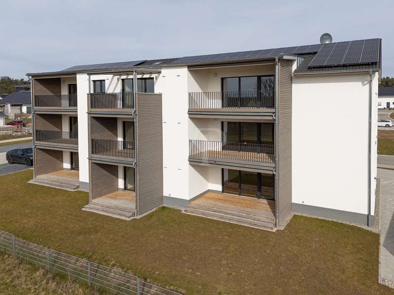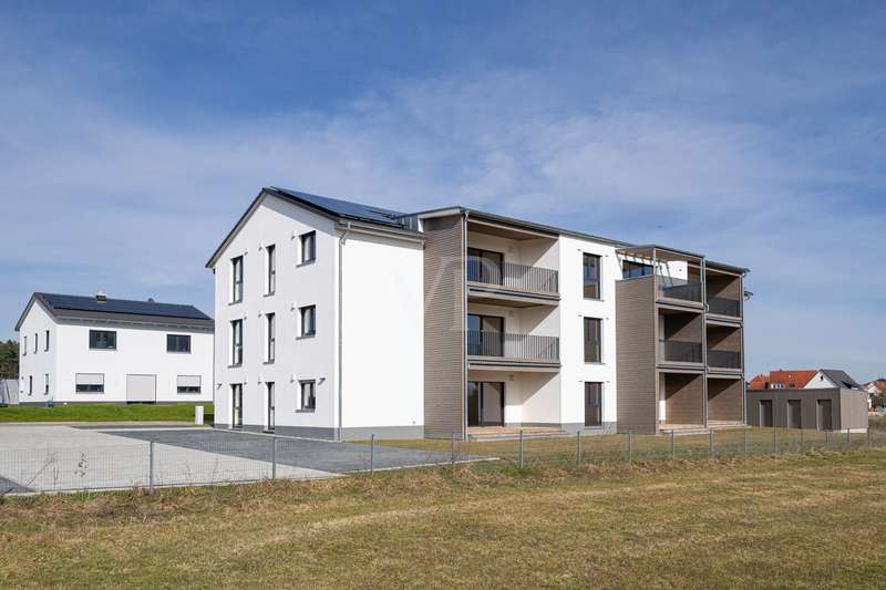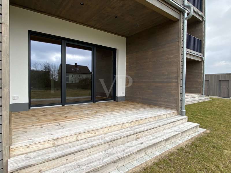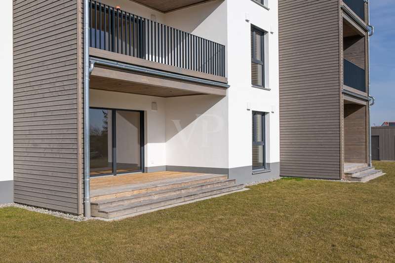 This modern new-build project is situated in a quiet and natural location in Flachslanden and impresses with its efficient KfW 40 standard and high-quality overall fittings. The complex comprises a total of just nine apartments, which are characterized by well thought-out architecture and first-class construction quality. The units offer an attractive selection of floor plans: 2-room, 3-room and spacious 4.5-room apartments that provide an ideal home for singles, couples and families alike. The project has already been completed, so nothing stands in the way of moving in! Both young and old will find a new home here. The entire complex and the apartments have been designed to be barrier-free. All floors are accessible via the central elevator. In addition, all bathrooms feature a level-access shower. The external bicycle boxes are also accessible at ground level and offer additional storage space. The timber construction gives the building a natural, warm appearance and also ensures a high level of energy efficiency. In order to guarantee standard living in the future, the new nine apartments were built using sustainable construction methods. Thanks to regenerative energy sources such as a photovoltaic system with storage, the local heating supply and the ventilation system with heat recovery, the apartments can definitely be described as future-proof and independent. The newly created floor plans impress with their clear room layout. The generous incidence of light also creates an atmosphere of harmony and elegance. The floor-to-ceiling south-facing windows provide a view of the greenery and convey a boundless feeling of living. Your own four walls offer a large, open area for living, dining and cooking. Attached to this are the respective retreat areas with plenty of space for work, guests and sleeping. Almost all bathrooms also have natural light. A floor-level shower with glass shower partition is naturally provided in all bathrooms. The 4.5-room apartments also have a bathtub. Lingering on the garden terraces and the well-proportioned south-facing balconies is particularly enjoyable. As soon as you enter your new apartment, you should feel the security and warmth that make a home. Particular attention was paid to the quality of the furnishings. High-quality real wood parquet has been laid in the living and sleeping areas and the bathrooms are tiled in modern anthracite. All residential units have additional storage space in the bicycle boxes and two free parking spaces. This new-build project in Flachslanden is ideal for anyone who wants to combine modern living with sustainability and a high level of comfort. A perfect home for people who value quality, energy efficiency and a residential location close to nature. See this pioneering project for yourself at a personal viewing appointment on site. We look forward to seeing you!