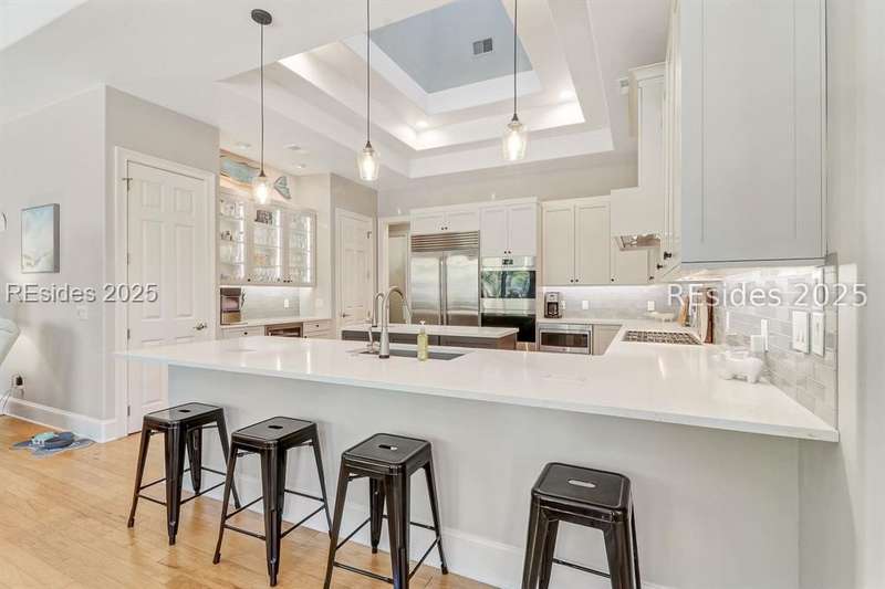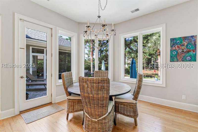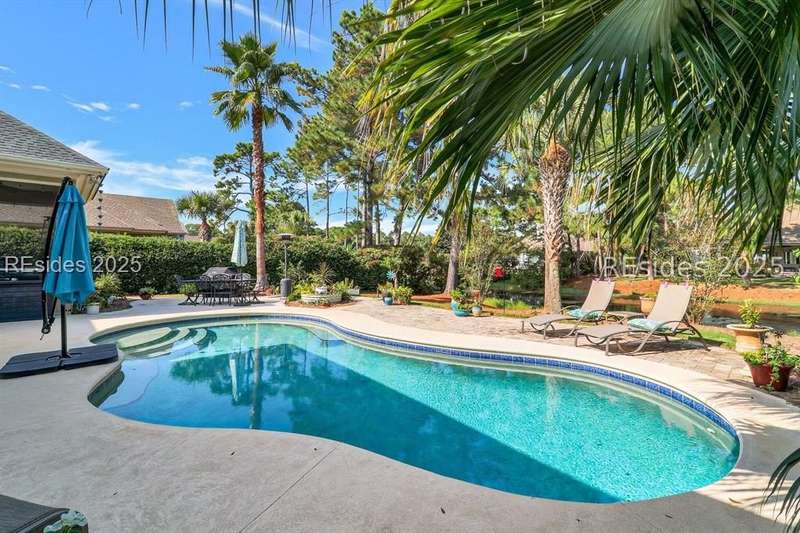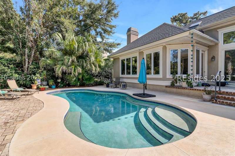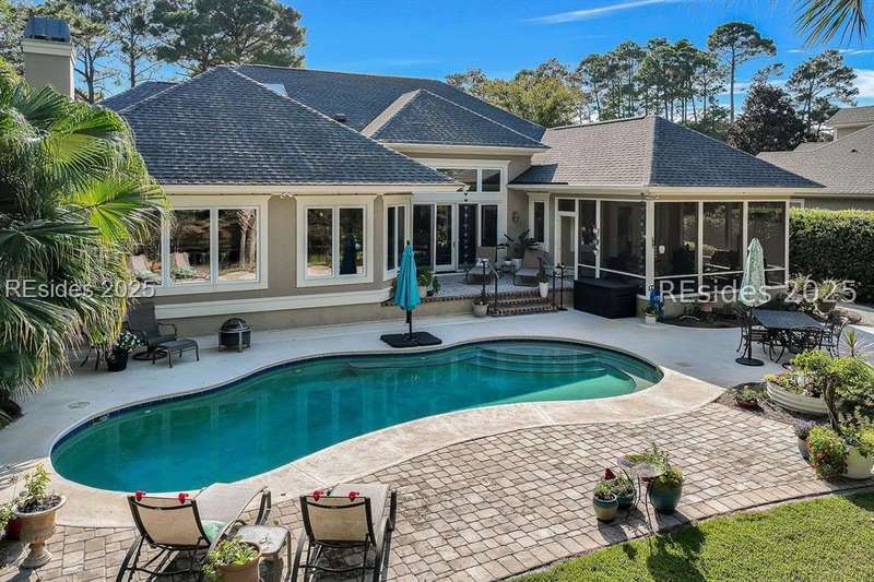 Nestled in the peaceful back section of Palmetto Hall, this exquisite 4-bedroom, 4.5-bathroom home offers the perfect blend of luxury and comfort. Situated on a tranquil lagoon, the property boasts a serene setting that is both private and picturesque. Inside, the home features a spacious and inviting layout with a large dining room, a formal living room, and a Main Bedroom suite complete with a private office for added convenience.With thoughtful bedroom separation and an open floor plan, the heart of the home is its stunning, completely renovated kitchen. Equipped with top-of-the-line Subzero and Wolf appliances, the kitchen seamlessly flows into the eat-in kitchen and family room, making it ideal for both everyday living and entertaining. The family room opens to a lovely outdoor patio, pool deck, and pool perfect for enjoying the natural surroundings and Hilton Heads mild climate.Additional updates include a new roof and one newly installed HVAC system for added peace of mind.