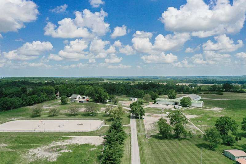 Ever dream of living on your very own horse farm? Located in Ross Township, Ohio, this 40-acre equestrian facility is ideal for both professional and recreational riders. It features six turnout areas with new wood and ElectroBraid fencing, a 28-stall main barn (12x12 stalls) with heated automatic waterers, rubber mats, a large feed room, tack room with individual lockers, two wash bays (one with hot water), and ample storage. The 85x200 indoor arena offers year-round training with premium sand footing and new LED lighting. Additional amenities include a heated/air-conditioned lounge, office, bathroom, and laundry. On-site housing includes a main home, guest cottage, and extra barn, making it perfect for owners and staff. Conveniently located one hour from WEC Ohio and under two hours from the Kentucky Horse Park. Only looking for a business opportunity and do not wish to live on-site? Property can be split. Business, large barn w/arena & 20 acres can be sold for $1.1M